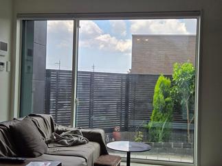 今回一番こだわったポイントが、フェンスの向き。 表が家側に向くように設置したのです。 フェンスの表情を、住んでいる人が一番楽しめる設置方法です。 リビングからの眺めが最高です。 これでお隣からの視界を遮って、ロールスクリーン全開で、リビングでくつろぐ事ができます。 ML1型フェンスを愛でながら、リビングのソファーで飲むお酒は最高に美味しいと思います。