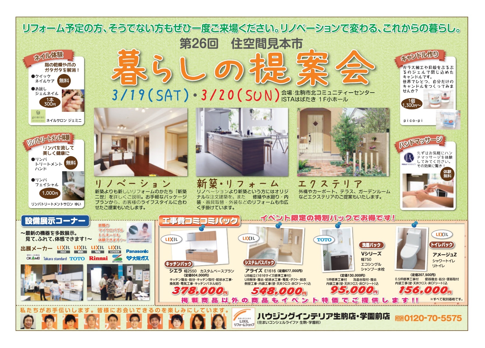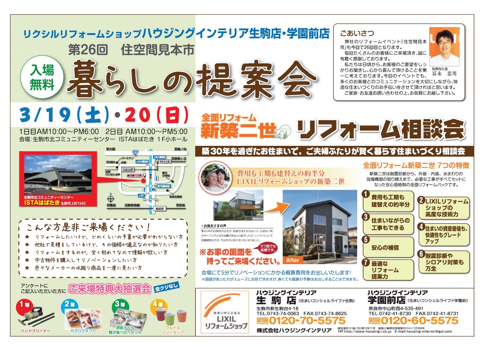 3月19日(土)20日(日)は生駒市 ISTAはばたきへ