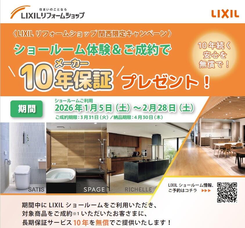 関西限定キャンペーン メーカー10年保証プレゼント!