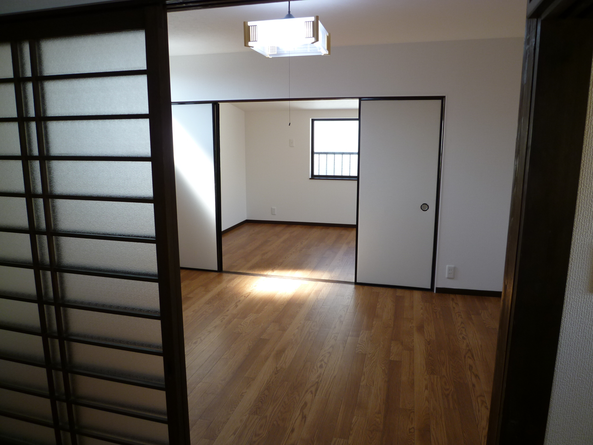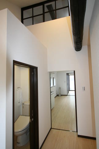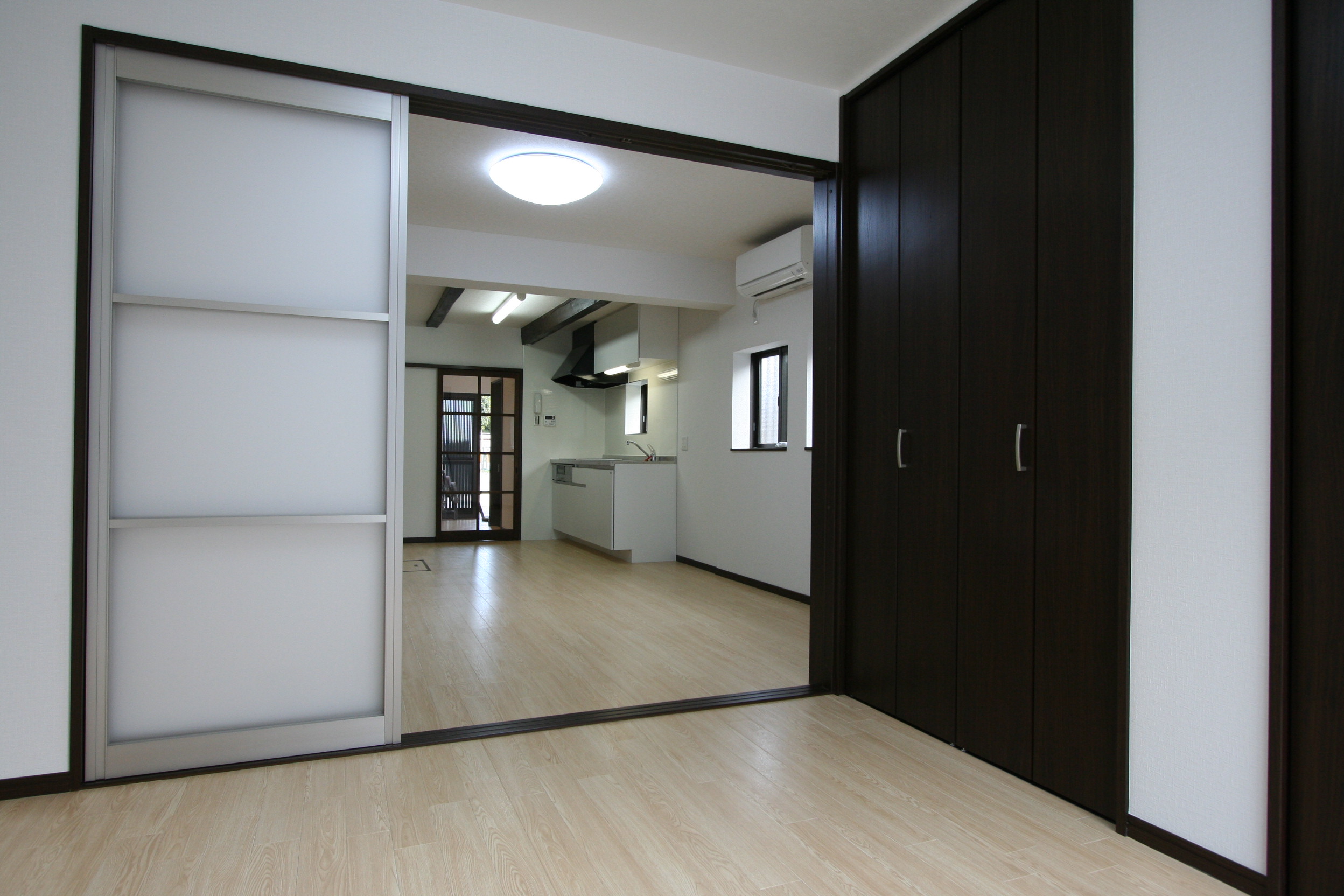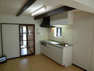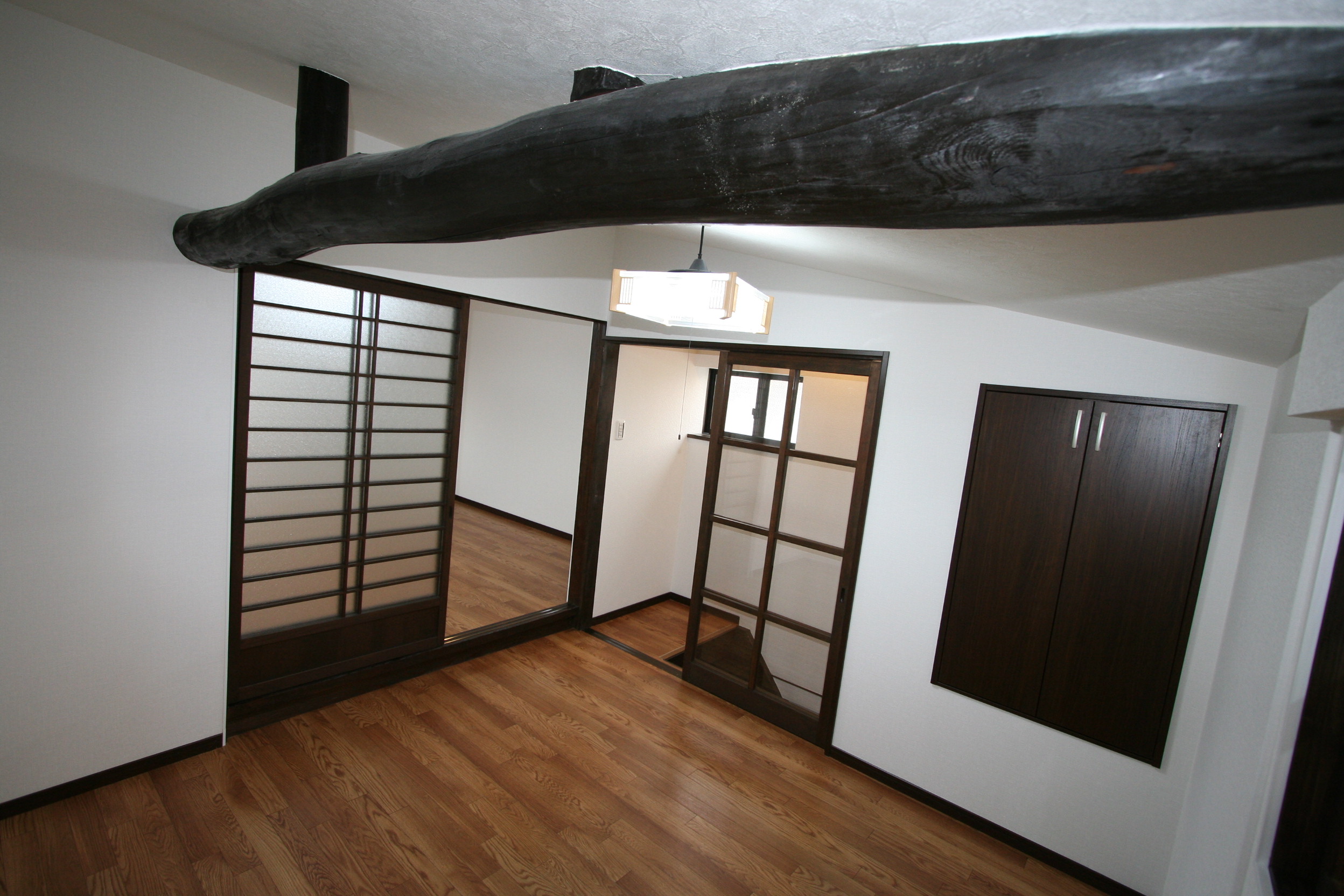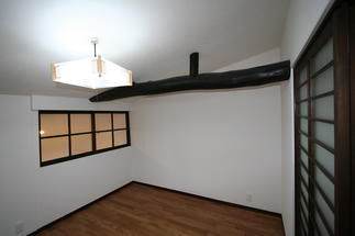 1階の既存の梁は包み込み、できるだけ天井を高くし、キッチンはコンパクトな仕様にしました。2階の寝室・天井を高く見せるため、既存の梁を露出させました。