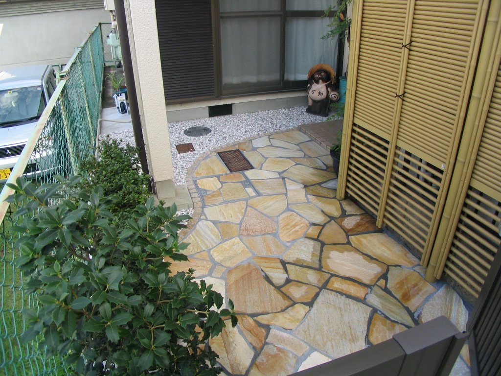 段差を少なく、歩きやすいアプローチにしました。お家の全体的なイメージを崩さず、和風調に仕上げました。