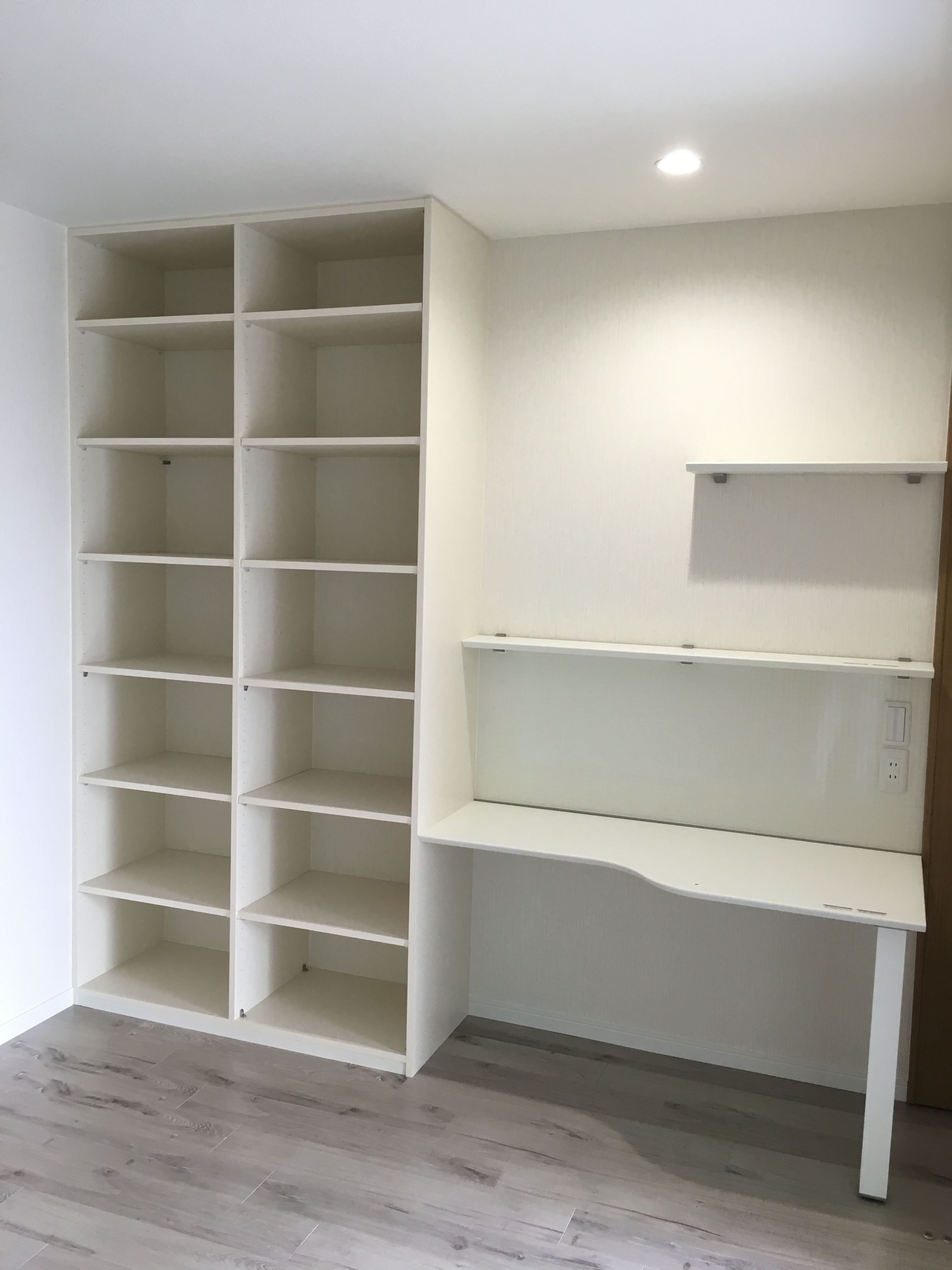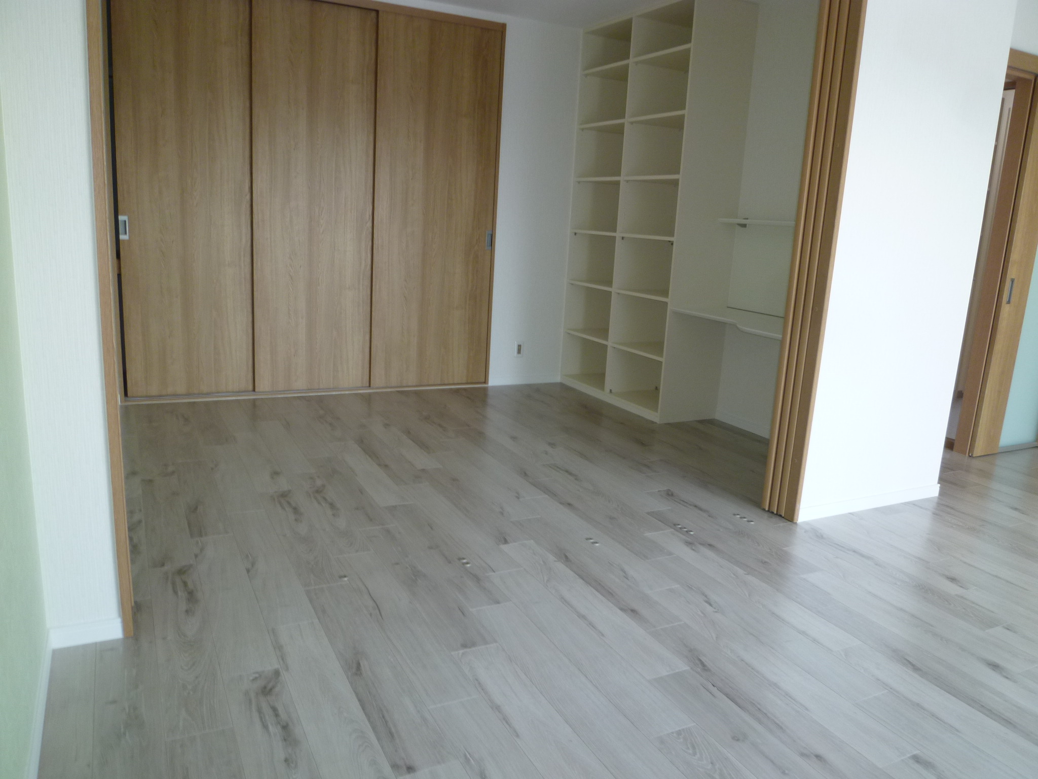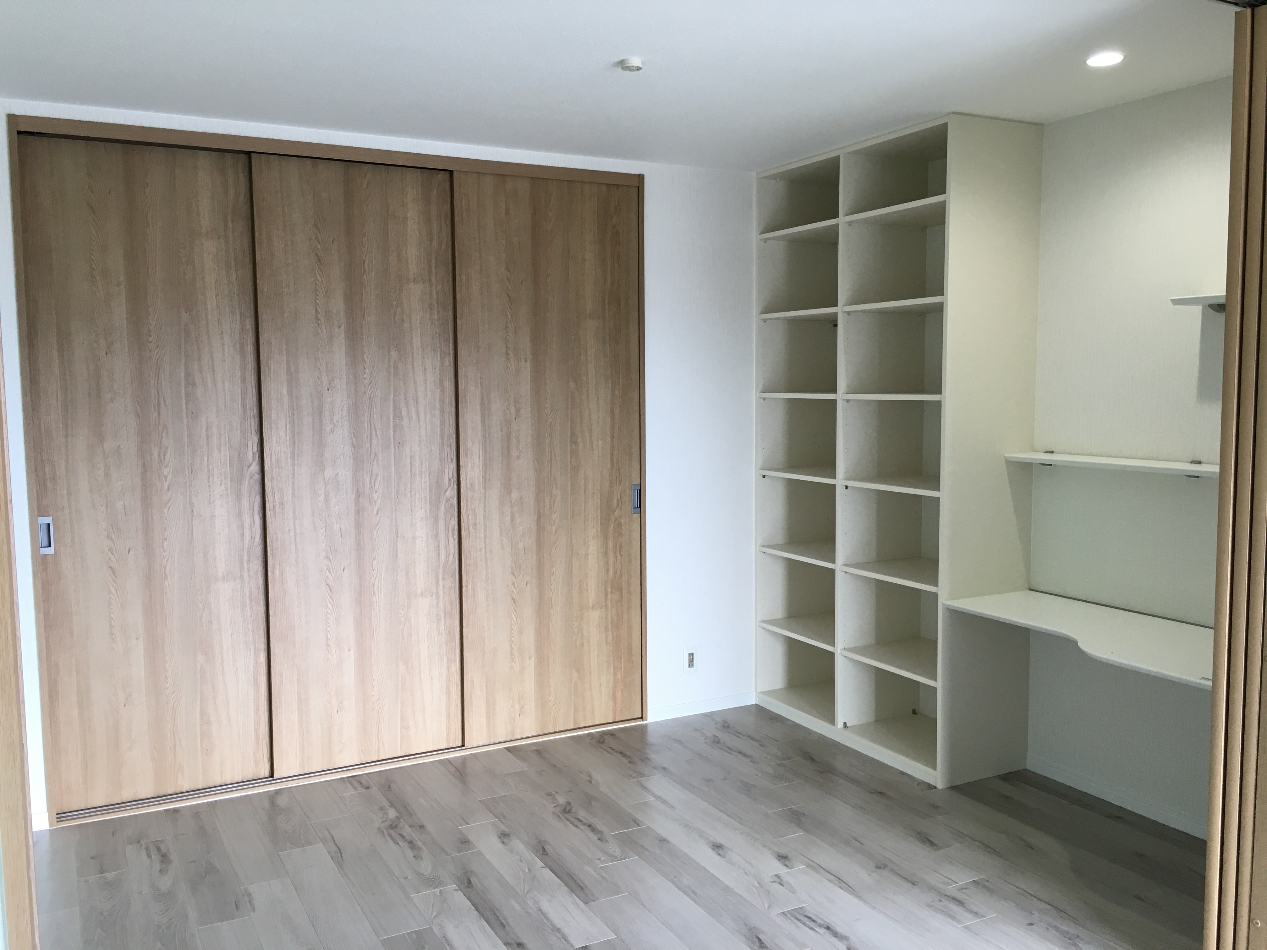 使用していない和室部分をLDKとつなげ、明るく広々とした空間にしました。 洋室にはクローゼットや本棚やデスク等、十分な収納量も確保しました。