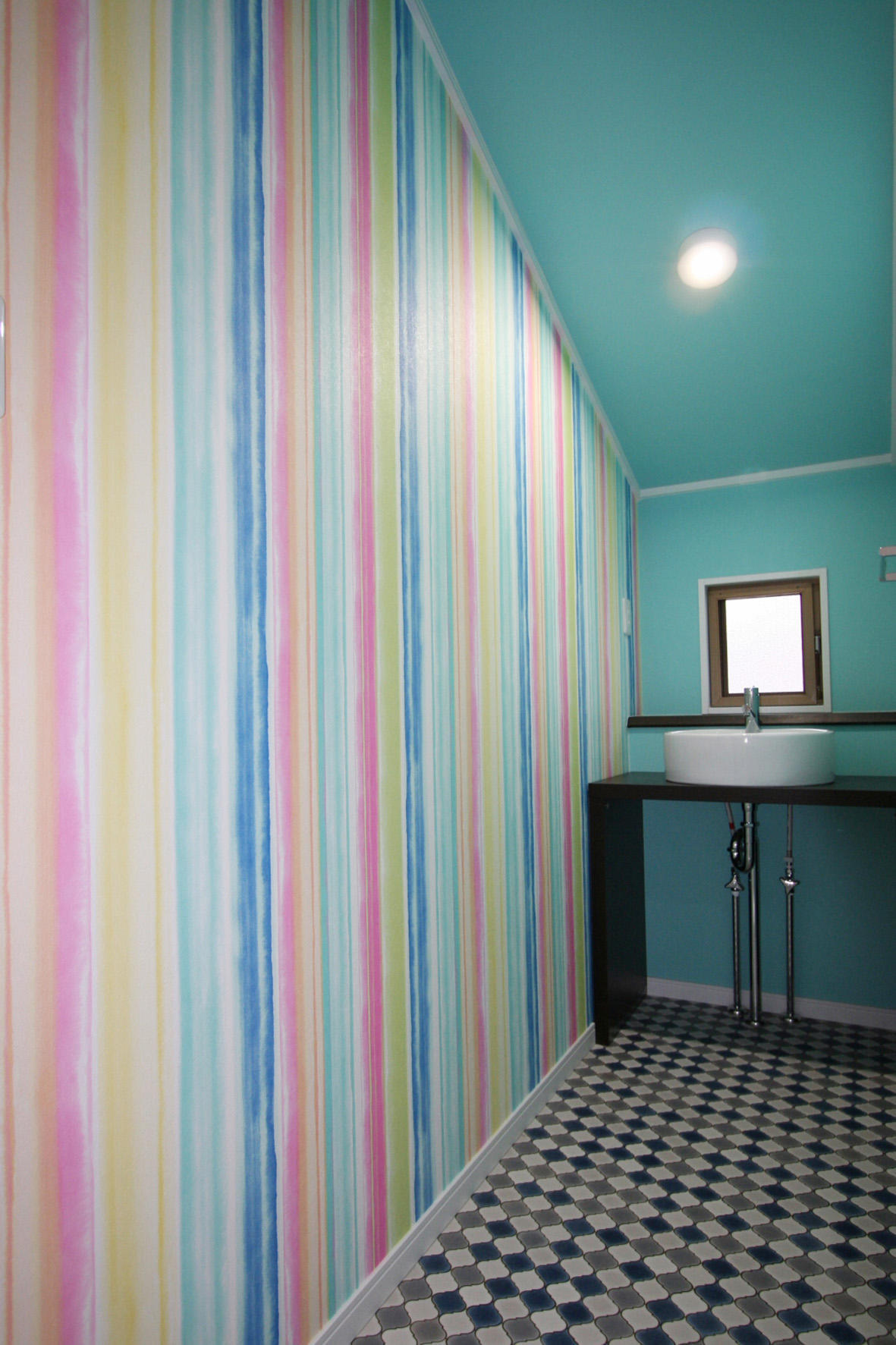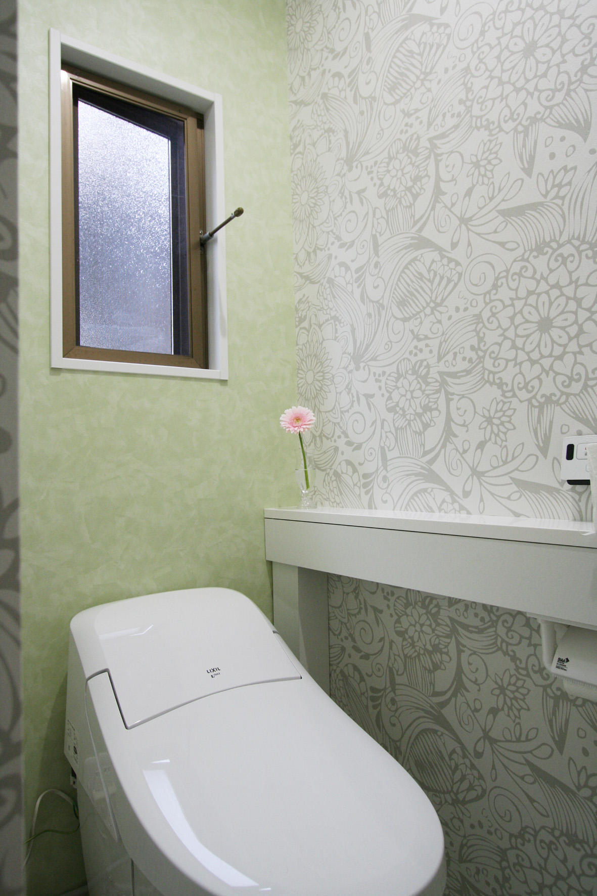 こだわりのクロスが映えて、居心地の良いトイレに。