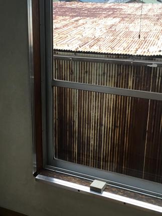 Y様邸のキッチン&リビングに大きな窓があります。外にはトタン屋根の物置小屋があり雨の打ち付ける大きな音に悩まされていました。寒い時期は大きな窓なので傍はひんやりして部屋が暖まりにくいのでインプラスをつけることにしました。