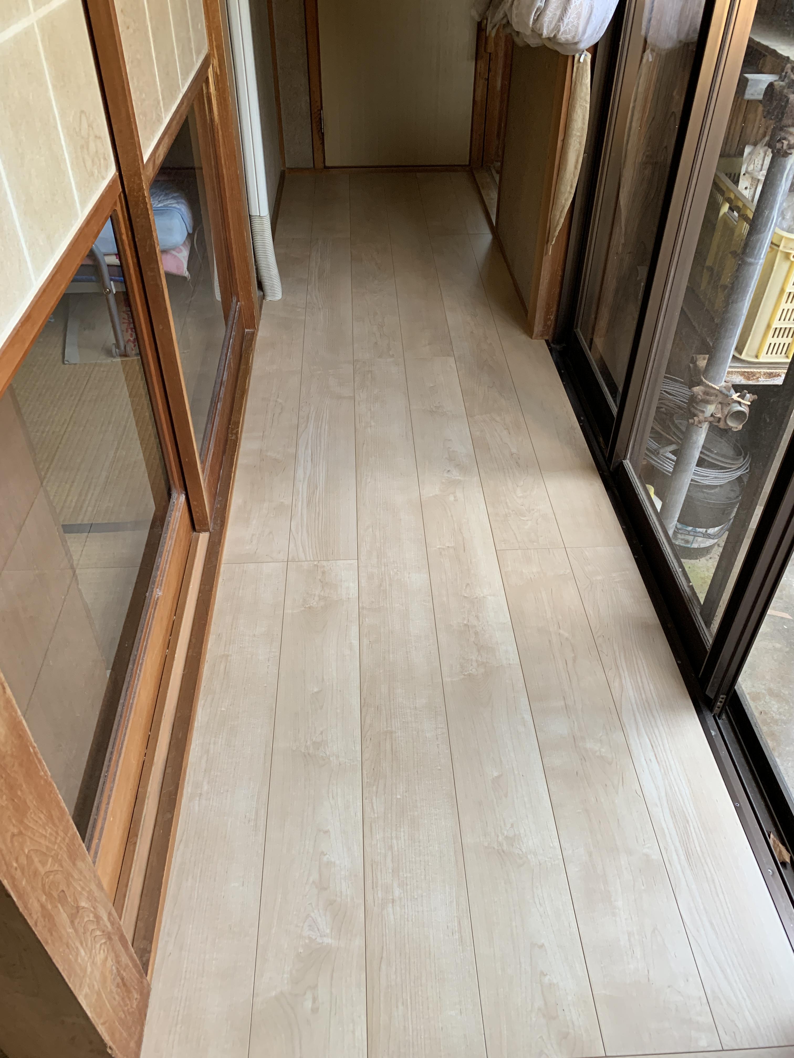 玄関廊下も傷んでいたので同じように床を張り替えさせていただきました。