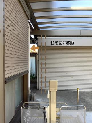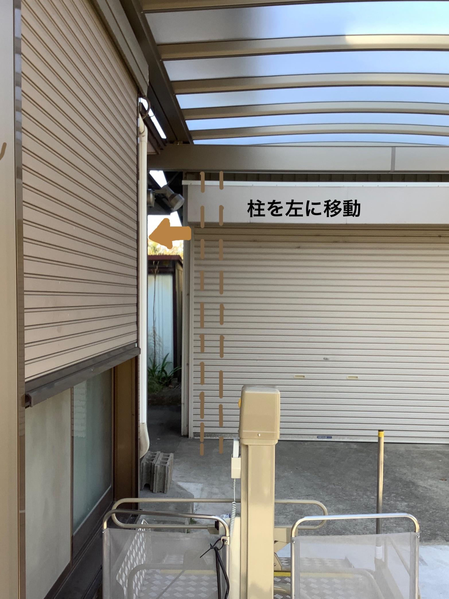旦那様が車椅子生活になってしまい掃き出し窓から出入りができるように昇降機を取り付けたのですが雨の日の駐車場から家の出入りは大変で濡れてしまいます。雨に濡れず車椅子の乗り降りができるようにしたいとご要望がありました。
