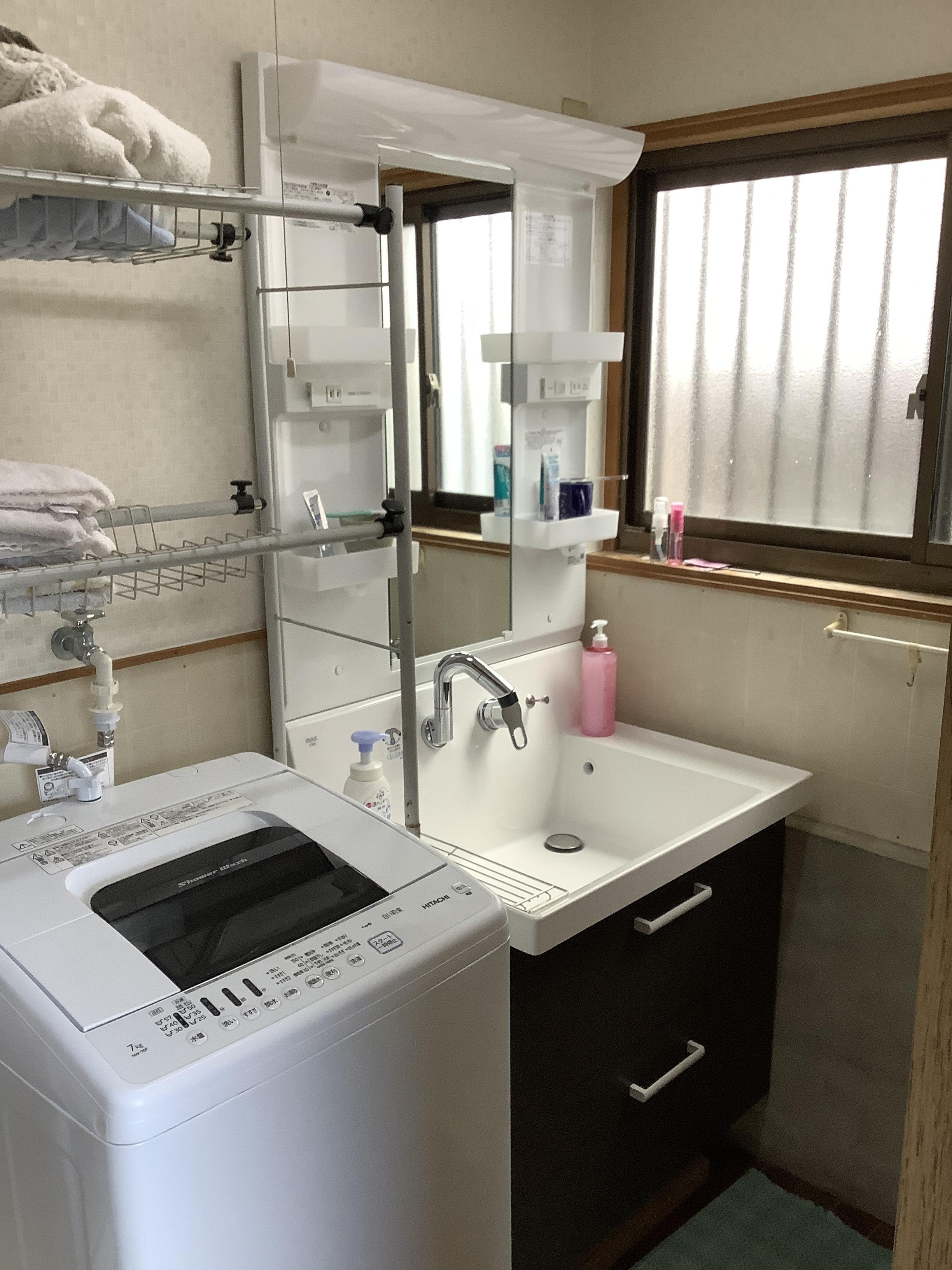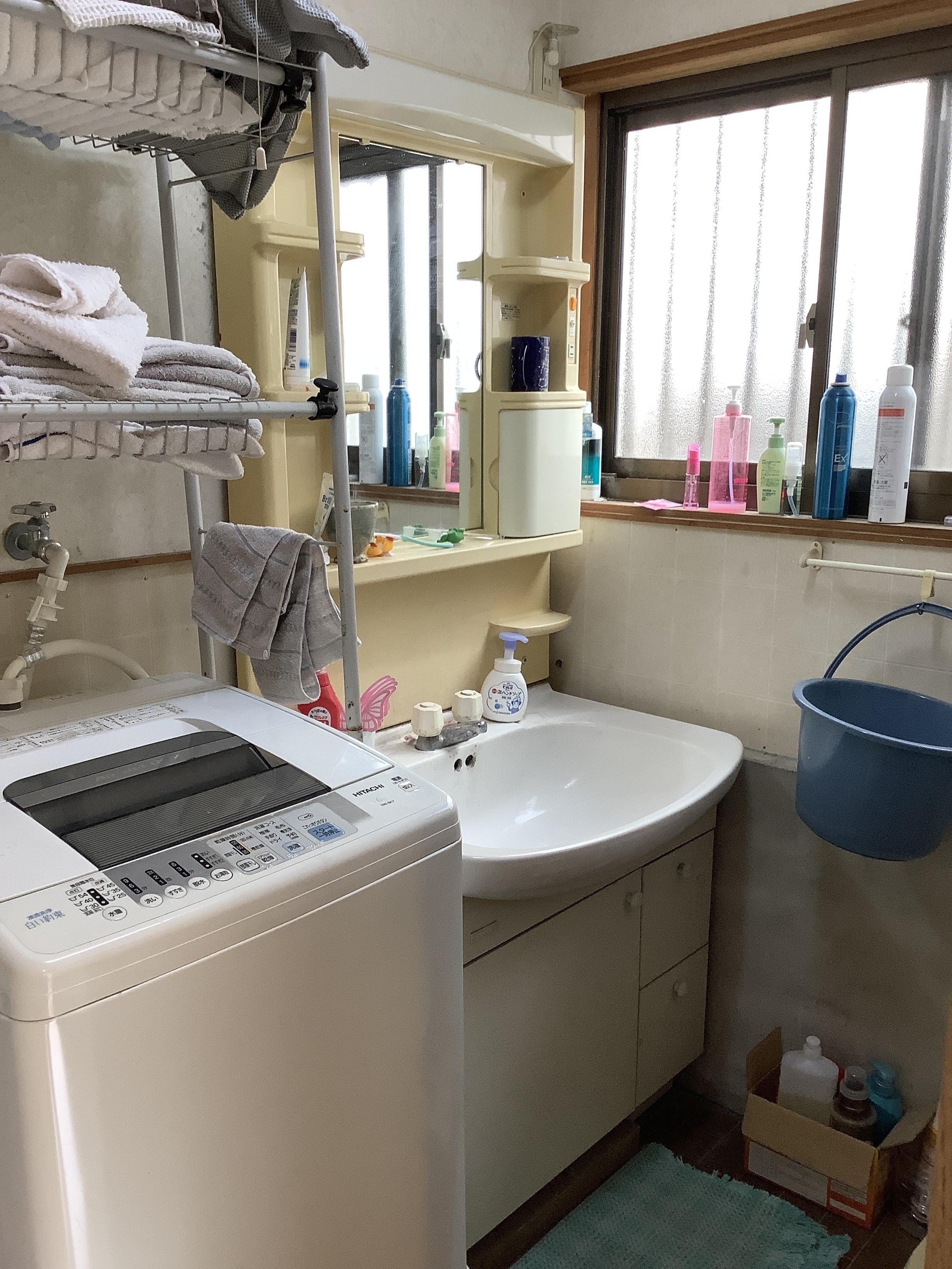 築50年の戸建てにお住まいのK様からのご依頼です。冬はタイルが冷たく寒いのであったかいお風呂にリフォームしたい。お風呂を替えるなら古くなってきた洗面台も!ということで洗面所もプチリフォームさせてもらいました。浴室が1メートル20センチ×2メートル20センチというとても細長い浴室だったためLIXILリノビオを検討していましたが、なるべく広いまま使えるようTOTOサザナに1220があったのでおすすめしました。