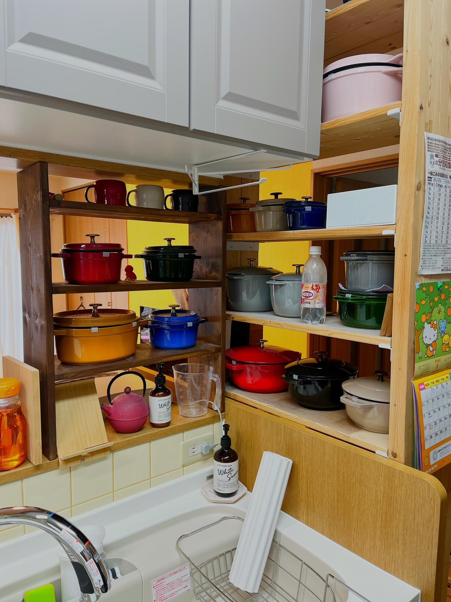 キッチンにはたくさんの調味料や調理器具が並んでいました。