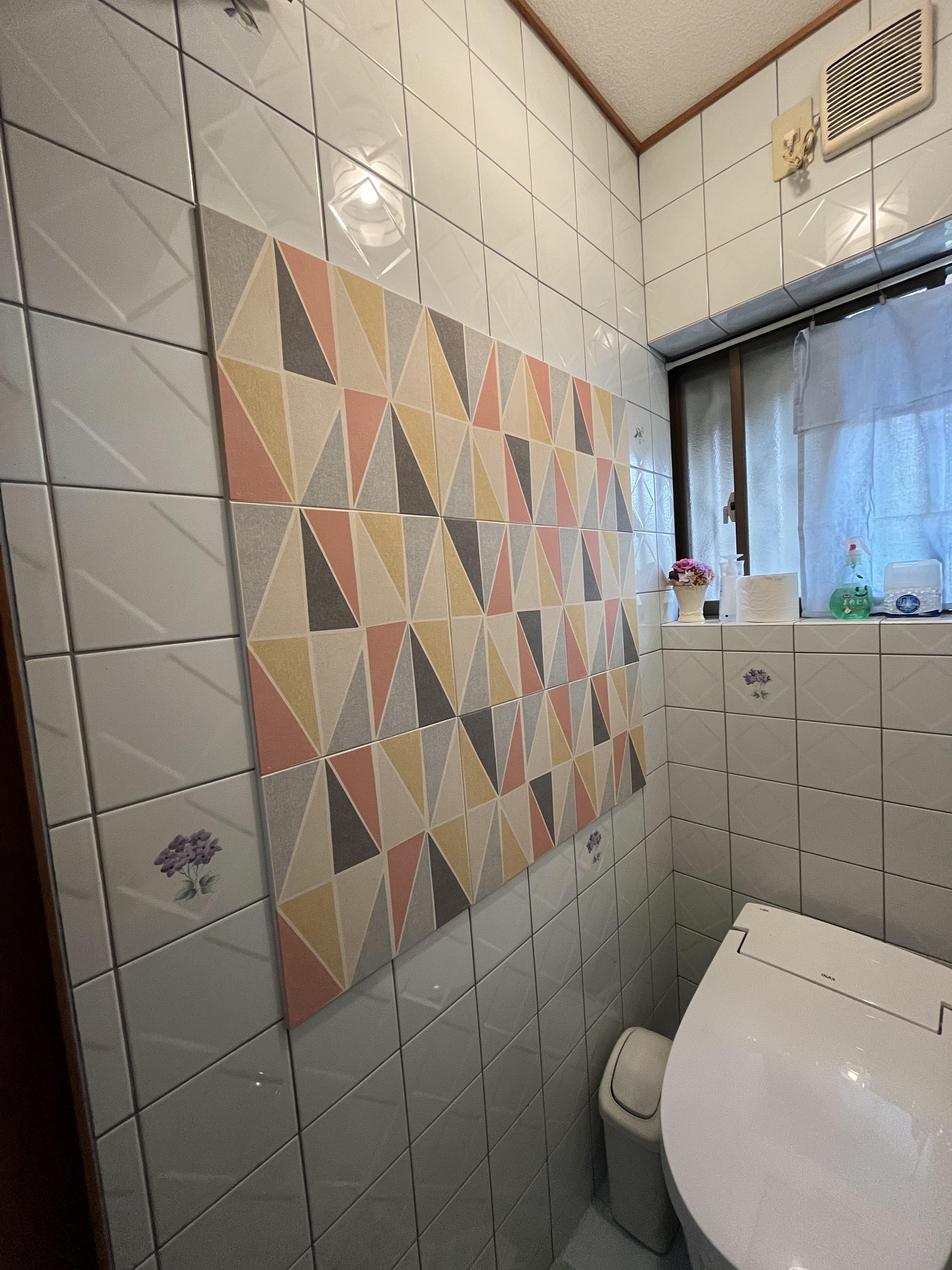 サティス×エコカラットプラスデザインパネルキットをセットで購入されるとお得なキャンペーンがありましたので、ご提案させていただきました。壁に、エコカラットプラスのアクセントを加えることでトイレの雰囲気も変わり快適なトイレ空間となりました。