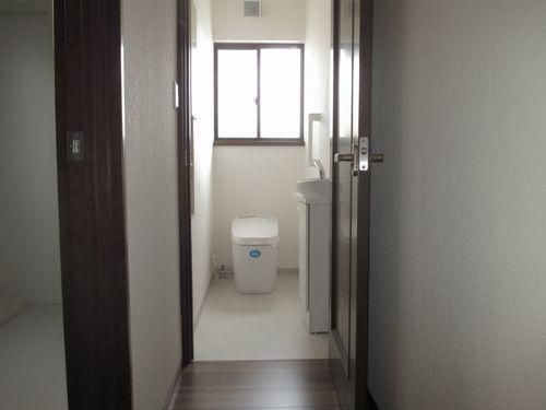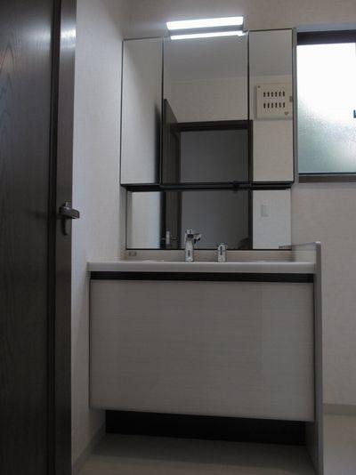 間口780m/mのスマート空間ですが、ベッセル型手洗器と収納キャビネットが取り付けできました。
