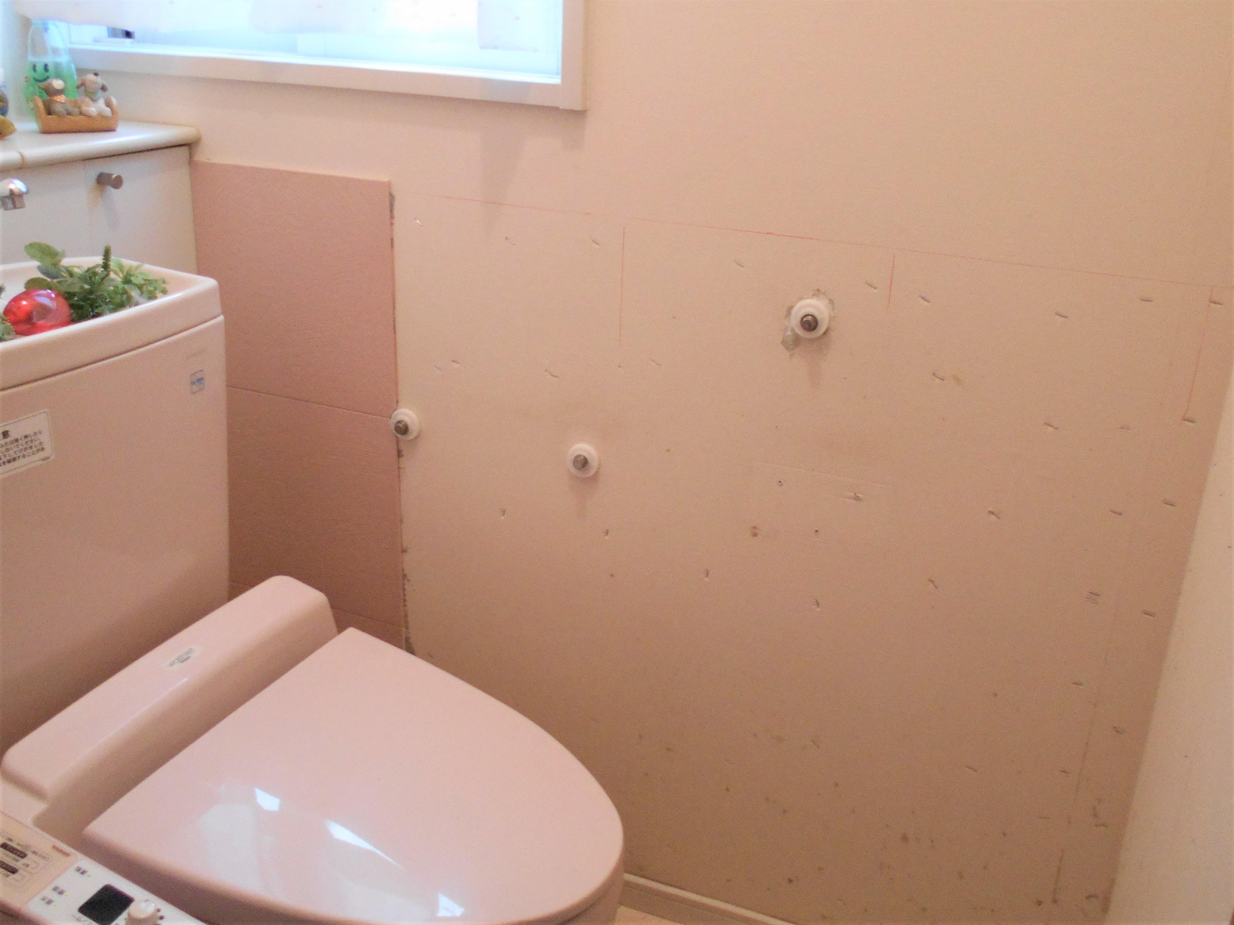 築10年以上のお宅です。トイレのクロス(主に腰より下部分)の汚れが気になられたそうで、当社の事務所トイレにも貼ってあるエコカラットをご紹介しました。 今のトイレ空間がピンクで統一されていることから、エコカラットの中でも数種類のピンク色から候補を絞り、実際にショールームにご来館頂き、一緒にシミュレーションやサンプル等でお気に入りの一点を選ばせて頂きました。仕上がりにも高評価を頂きました。
