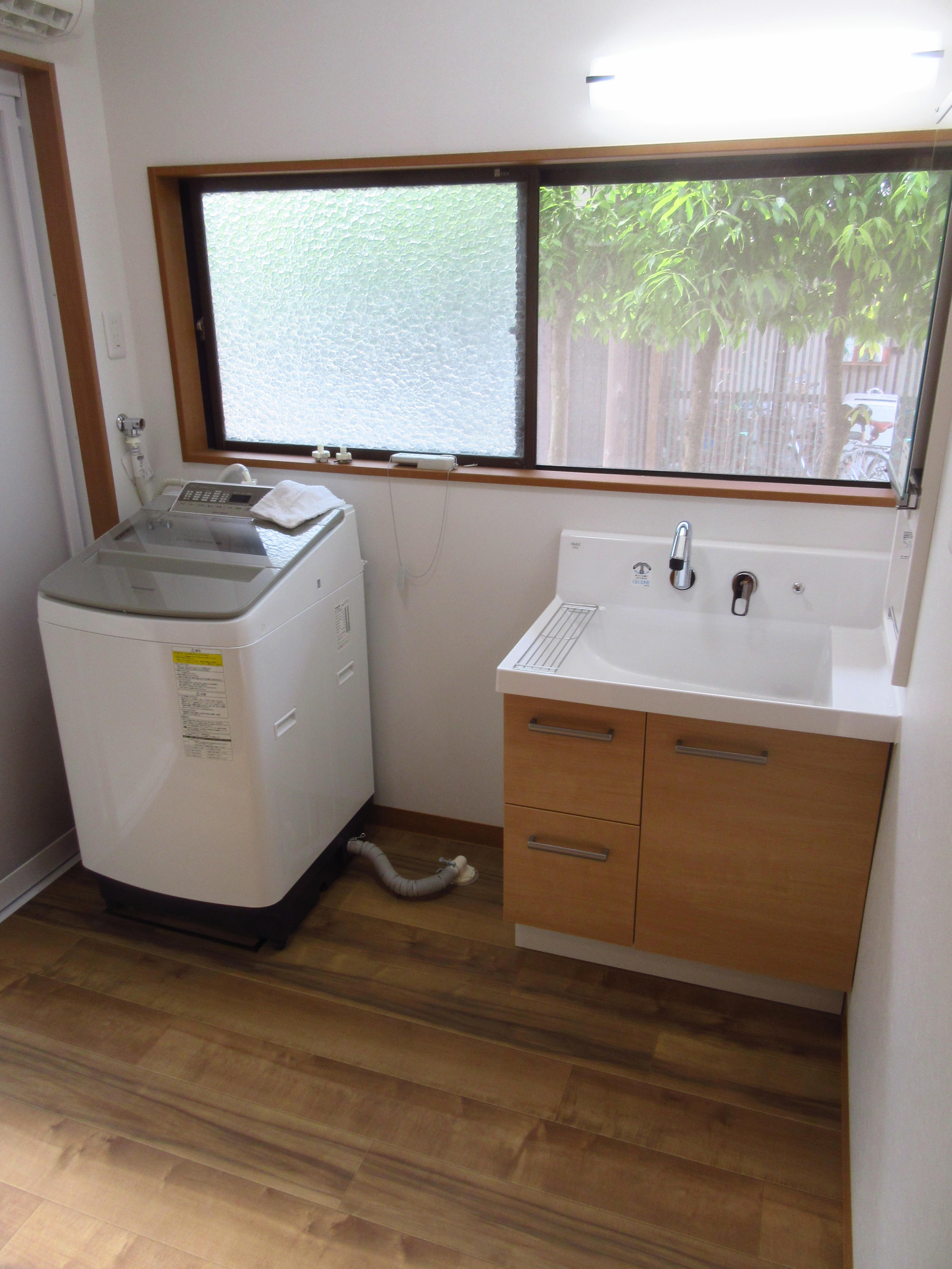 バスルーム、洗面室、トイレを一気に丸ごとリフォームさせて頂きました。間取りを変え、それぞれの空間が広々と使えるようになりました。
