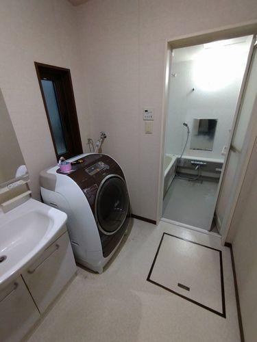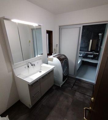 広々ボウルで使い勝手がよく、掃除が楽で毎日が楽しくりそうな洗面台。 大きな三面鏡の裏は収納スペースに!