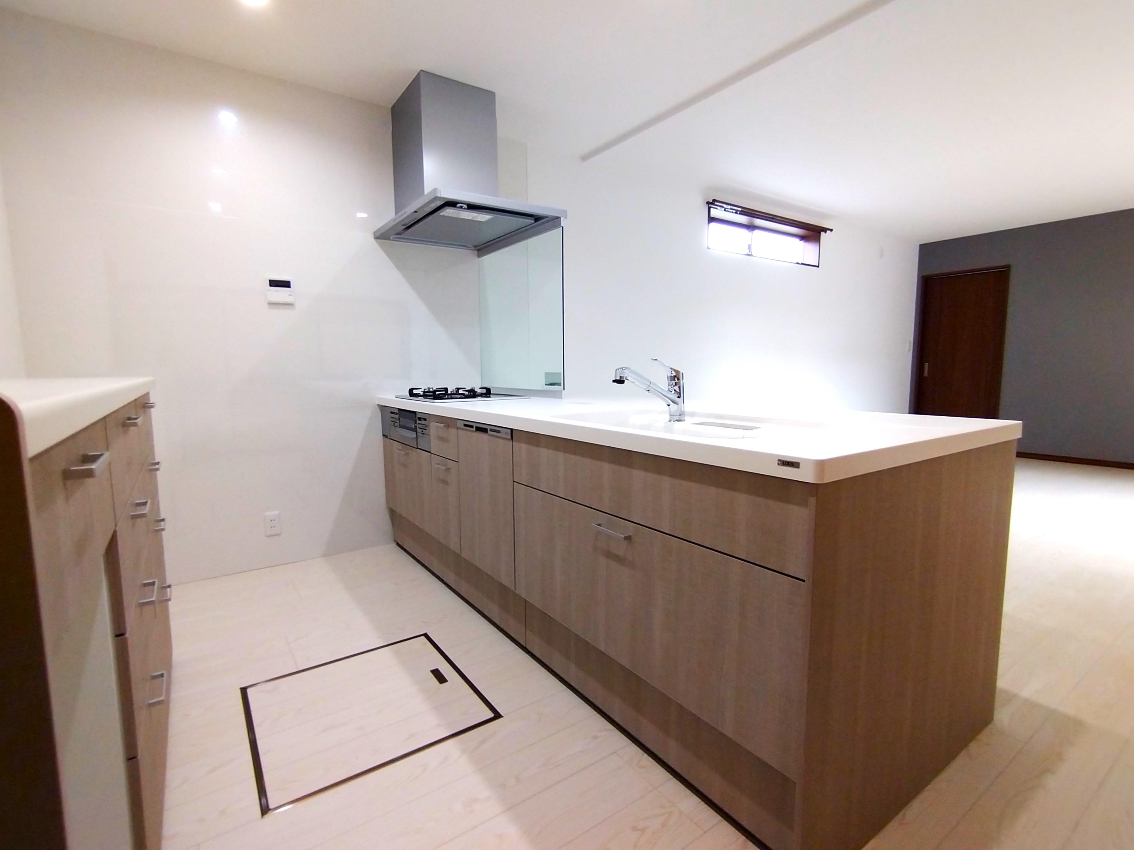 別々だった空間を一つにし、対面キッチンで広々開放感ある空間に。 背面のカウンター付収納で調理スペースが広がりました。 全体に白を基調とし、アクセントカラーを付けることでモダンな雰囲気に。 とても色のチョイスがオシャレで素敵なリフォームになりました。 その他水回り、外回りとリフォームさせて頂きました。