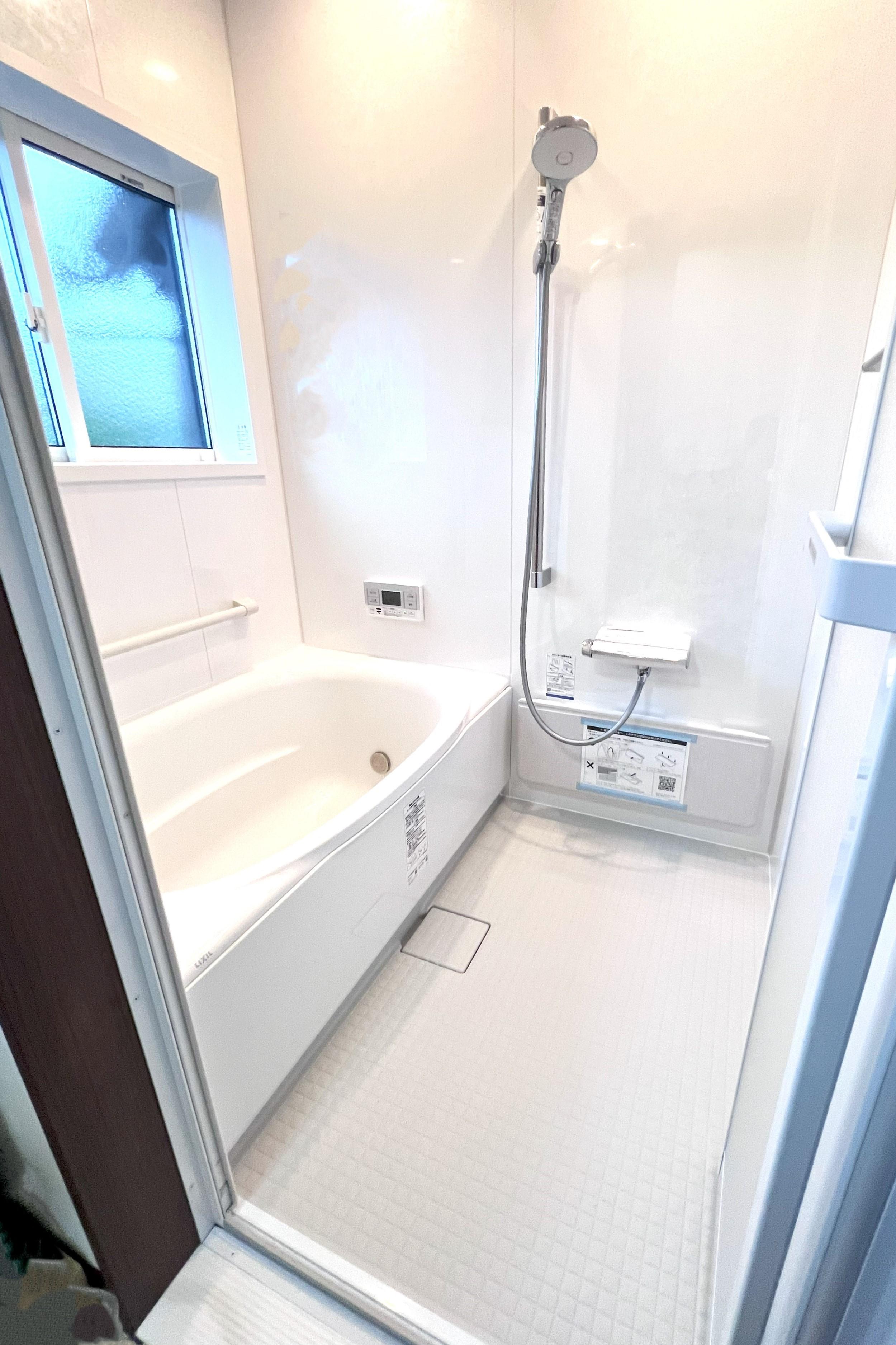 窓が高い位置にあり浴室内はタイル張りでお掃除が大変で寒かったお風呂。 壁パネルがツルツルでお掃除がとても楽。もちろん浴槽、床も柔らかいスポンジの掃除で毎日のメンテナンスが楽にできます。 全体に保温効果のある浴室。凍えながらお風呂に入ることもおさらばです! ゆっくりお風呂で温まって疲れをいやして頂きたいです。 お風呂のリフォームと一緒にエコキュートも設置させて頂きました。