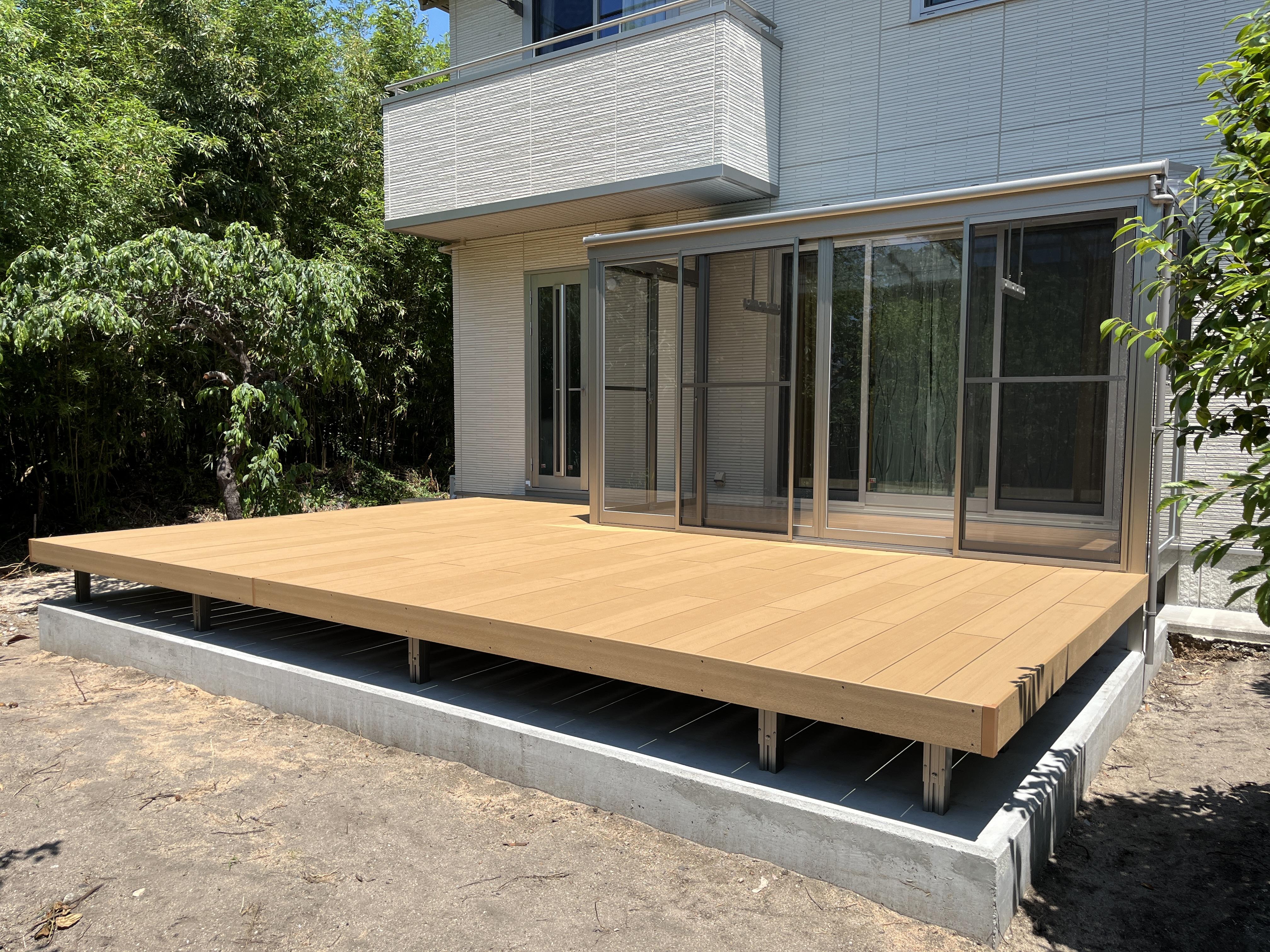 植栽を伐採しウッドデッキとテラス囲いを新設しました。 テラス囲いはリクシルの「サニージュF」。風と通しが良く天気のいい日は物干しスペースだけではなく、そこで本を読んだりプライベート空間としても活用できそうです。 ウッドデッキはリクシルの「レストステージ」。ナチュラルな質感のデッキ。掃除などのメンテナンスがしやすいので汚れてもストレスなく掃除が簡単にできます。