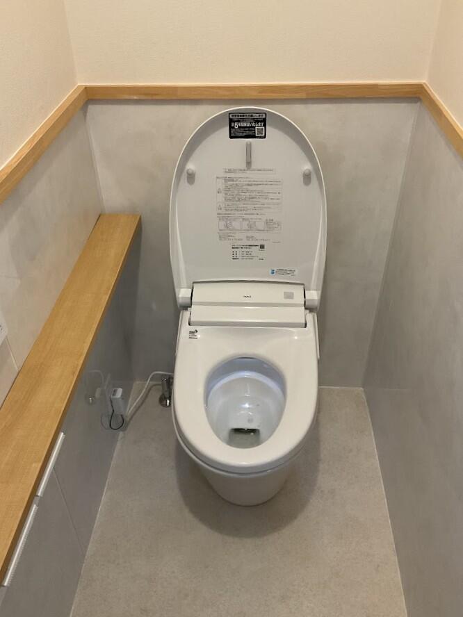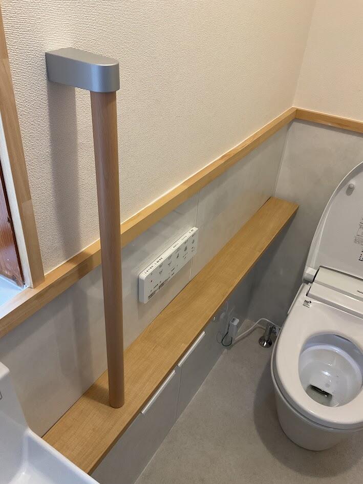 和式トイレから洋式トイレにしました。 広々としたトイレ空間にするためコンパクトなサイズの トイレ「サティスS」を採用。 タイル張りで段差があったトイレ室をバリアフリーにし手すりを設置、 そして出入りしやすいようドアから引戸に。 これからずっと安心してお使いいただける トイレ空間にリフォーム。
