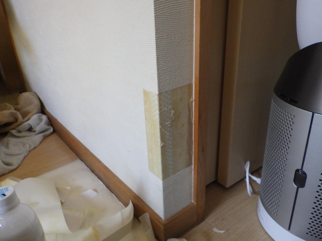 お客様の紹介で部分的に壁紙クロスの補修をしました。同じ壁紙クロスを探すのに一苦労しましたが、何とか同じものが見つかりました☆
