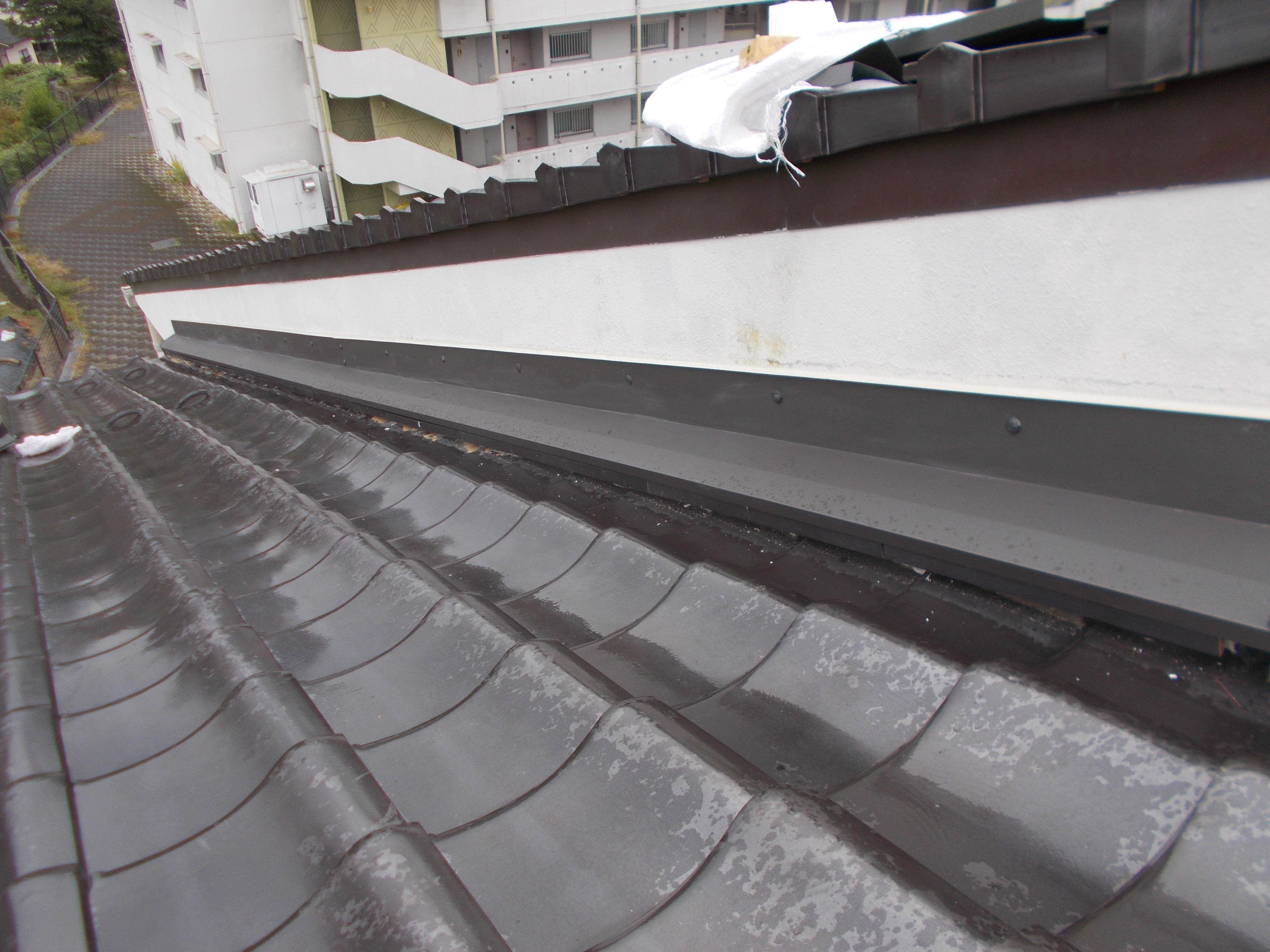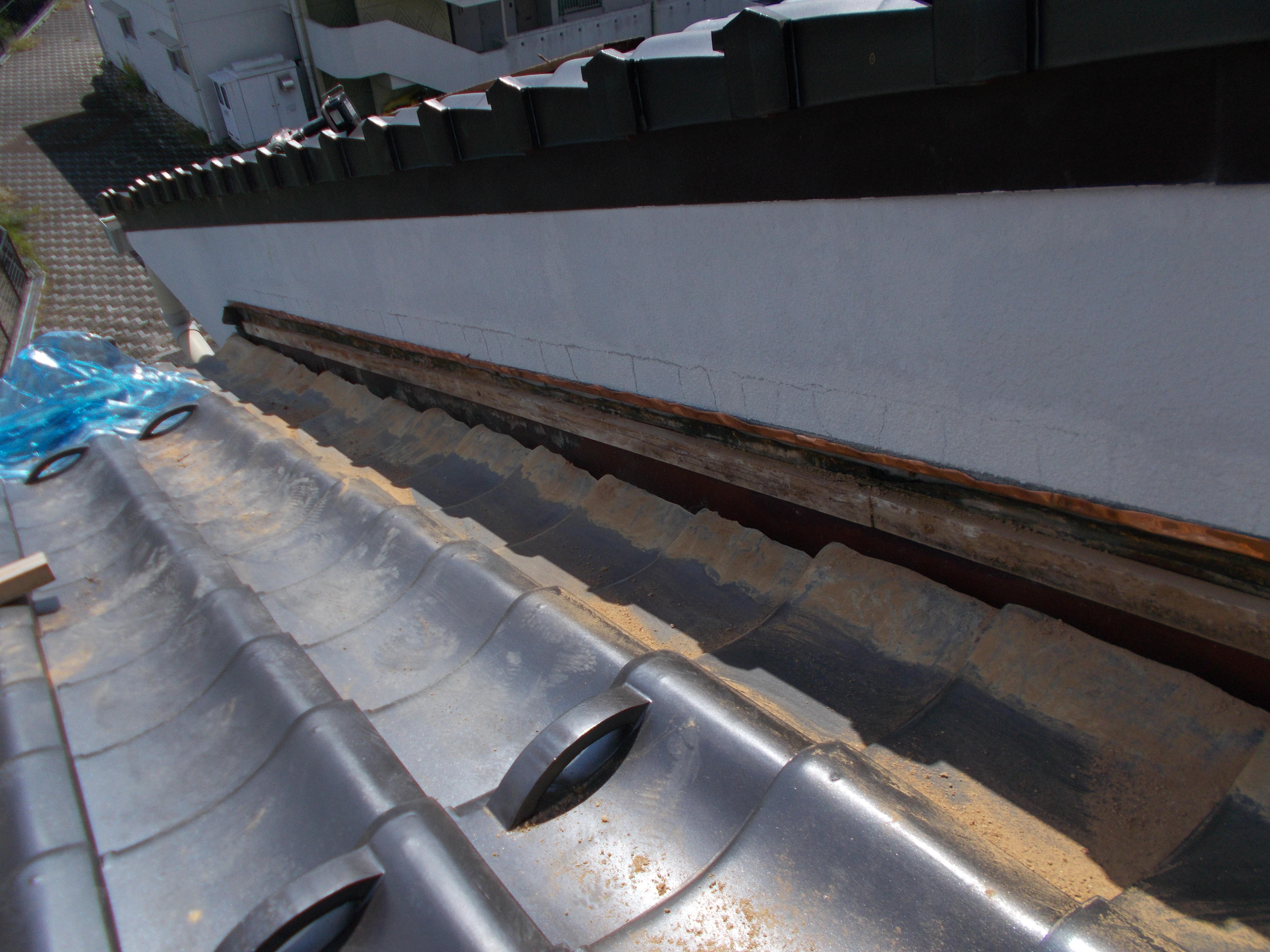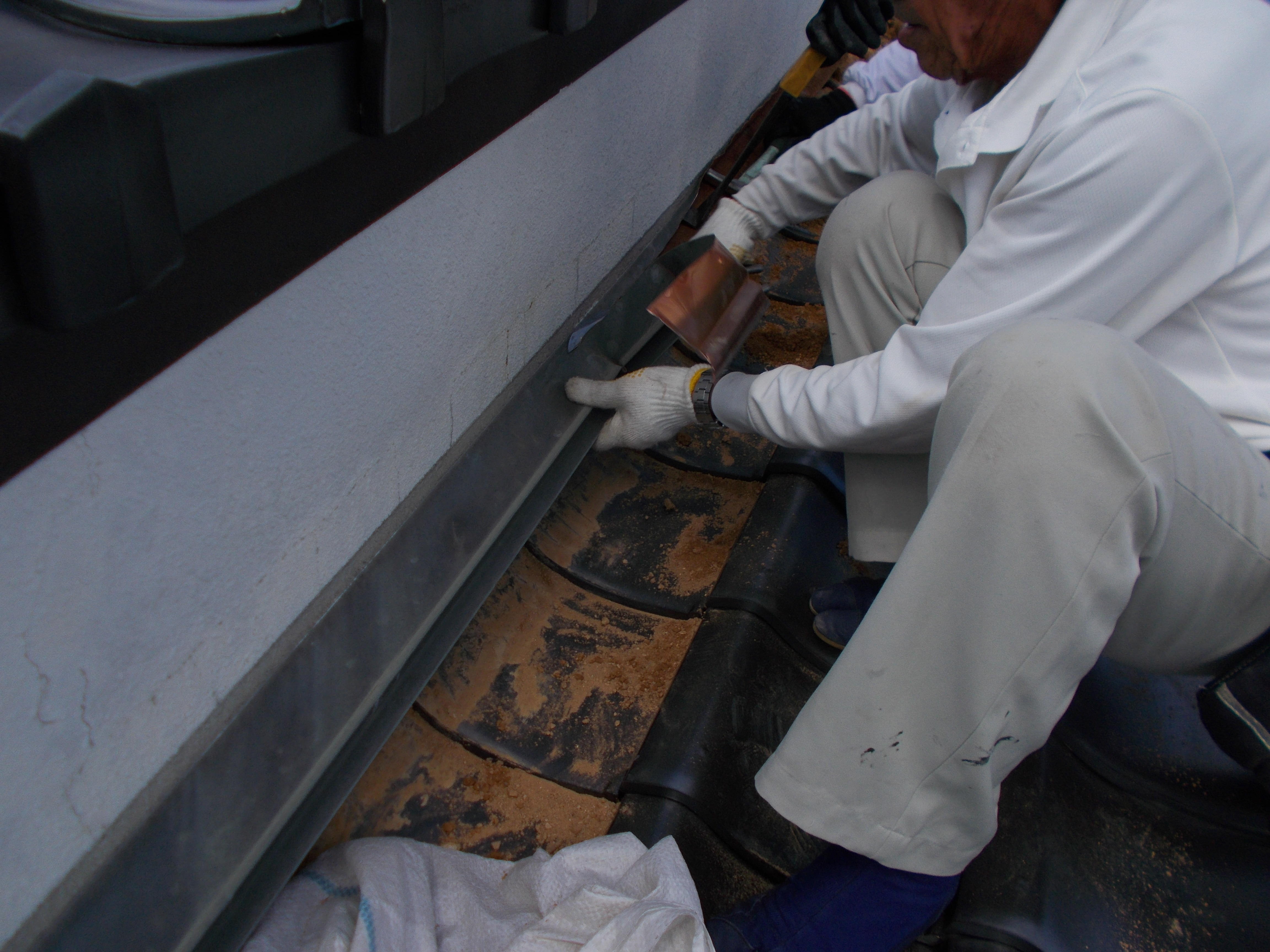 壁際のし瓦が経年劣化により土がやせ、土が乾き瓦がずれて落下するのを防ぐ工事を実施しました。