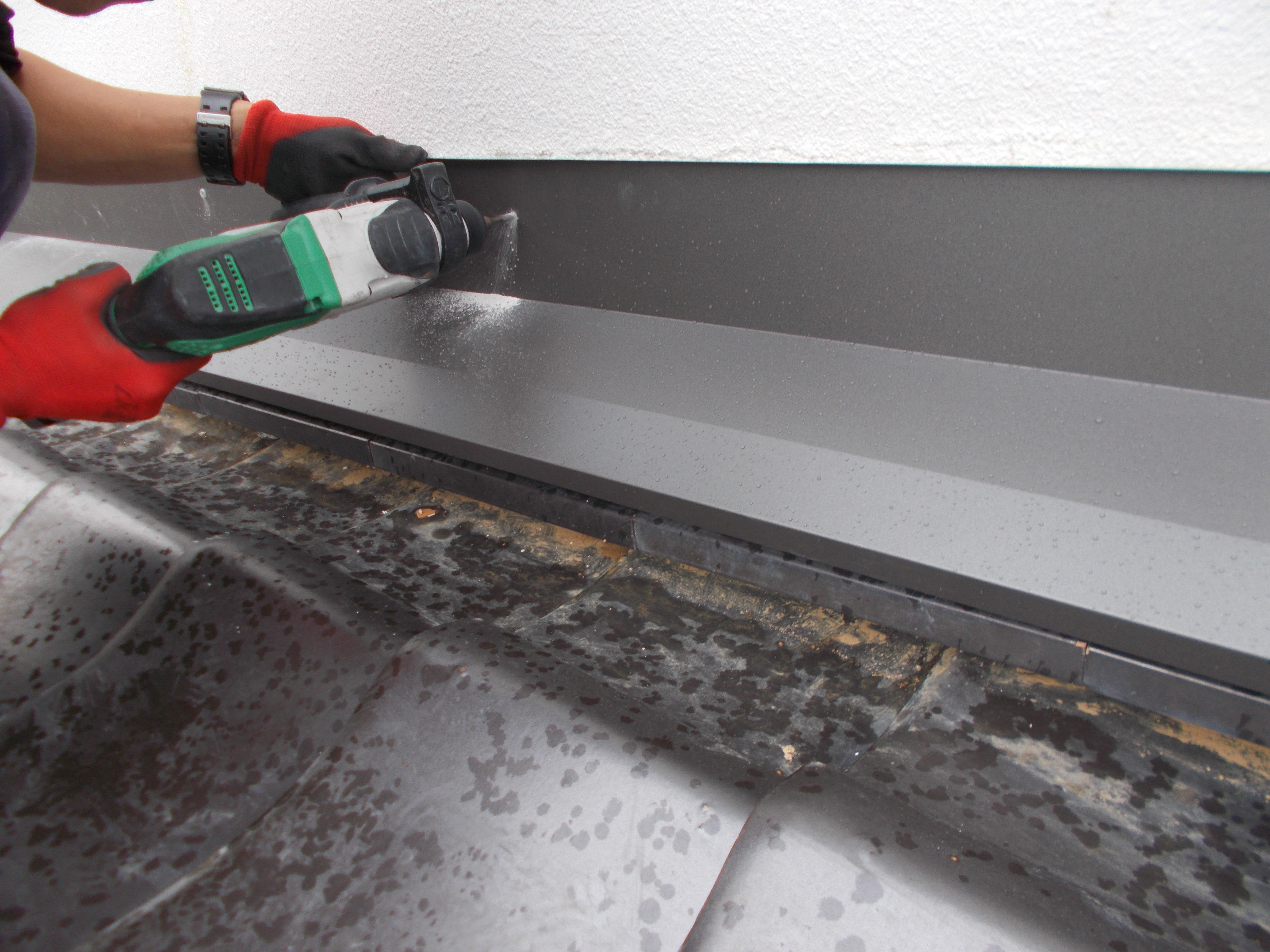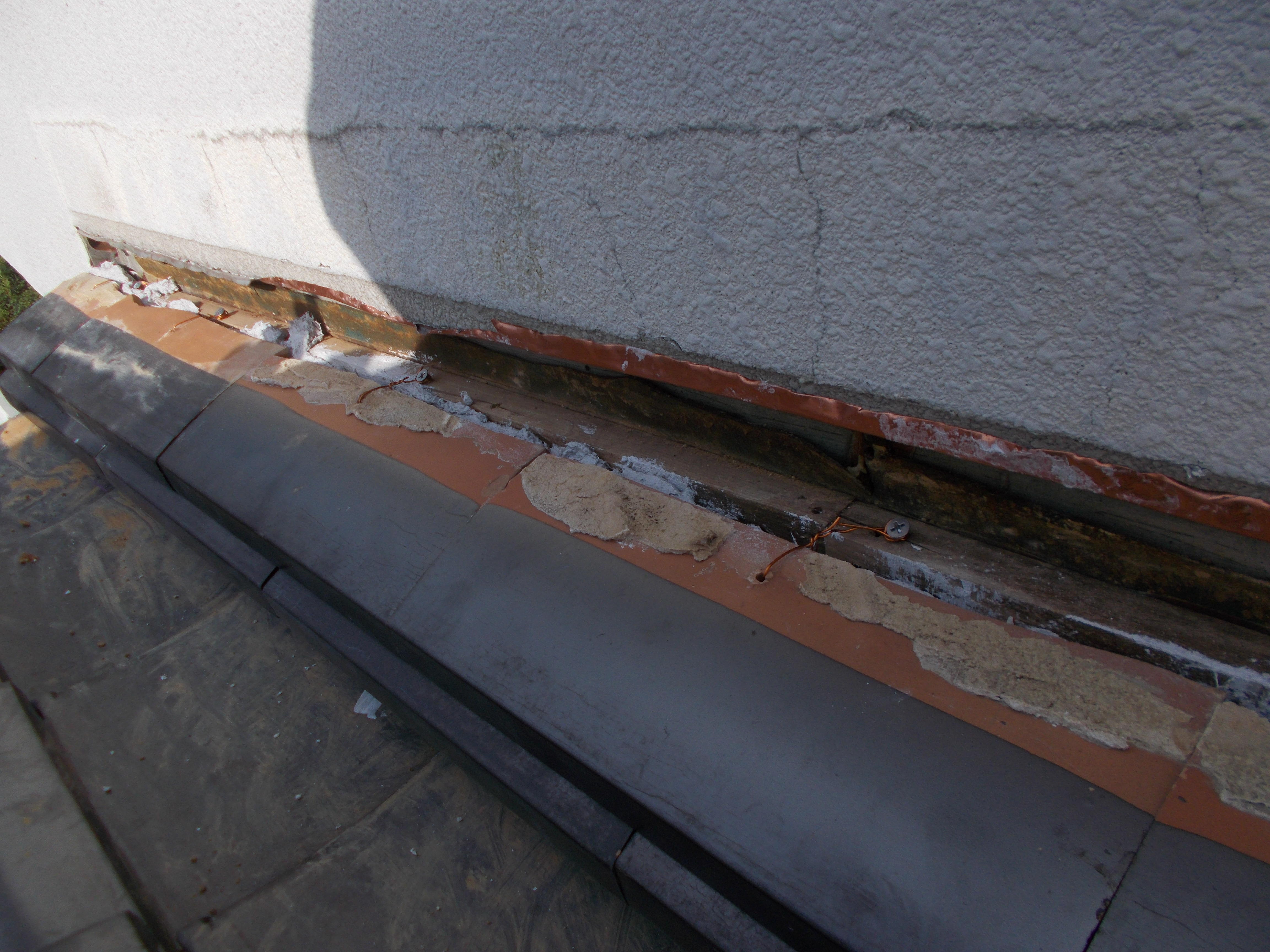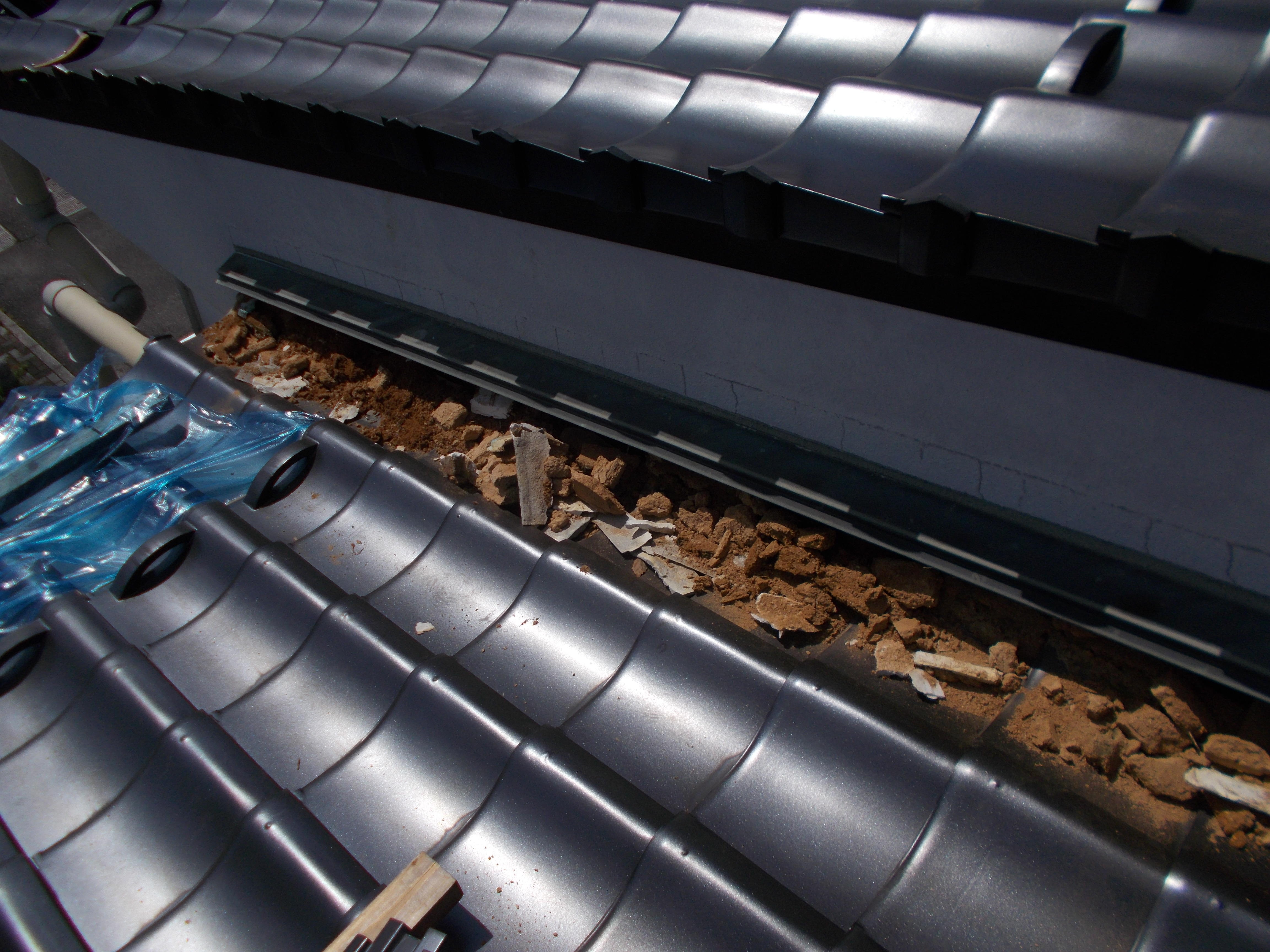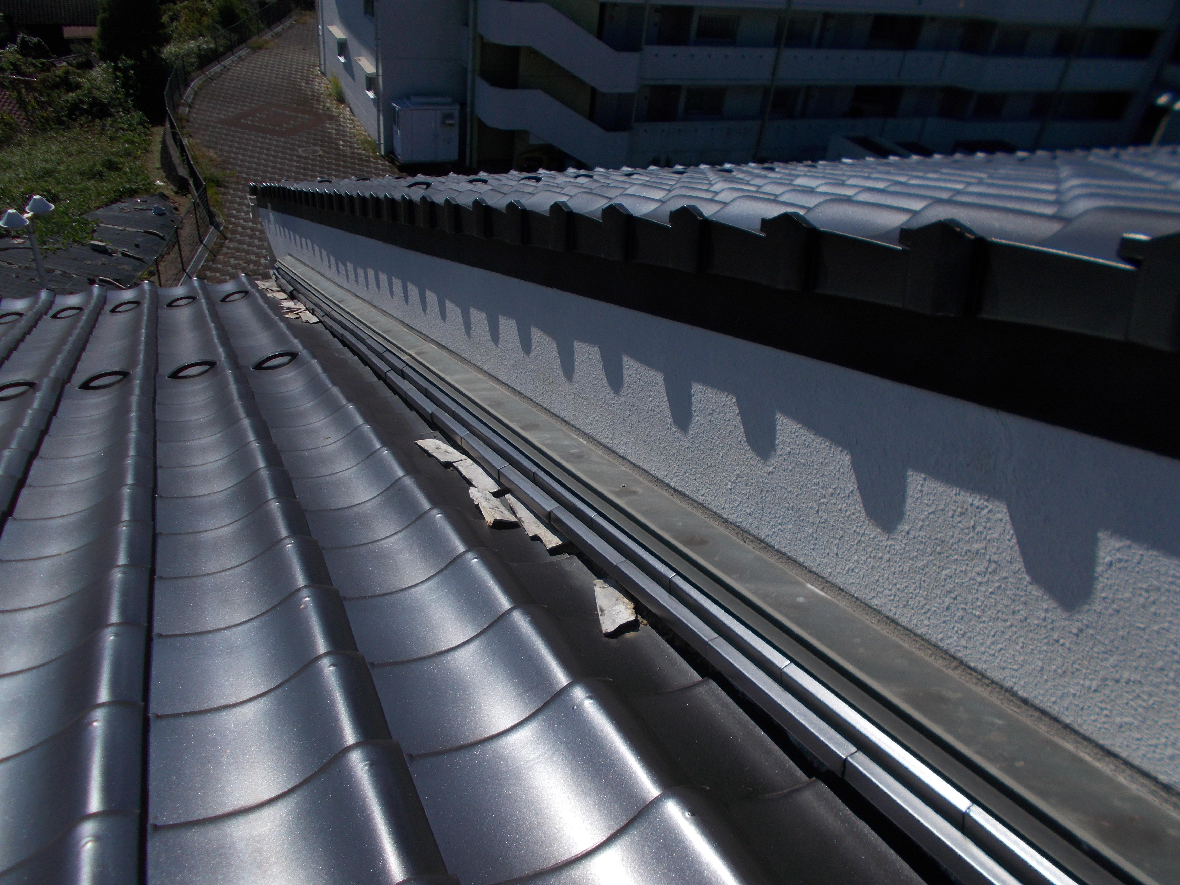 壁際のし瓦が経年劣化により土がやせ、土が乾き瓦がずれて落下するのを防ぐ工事を実施しました。
