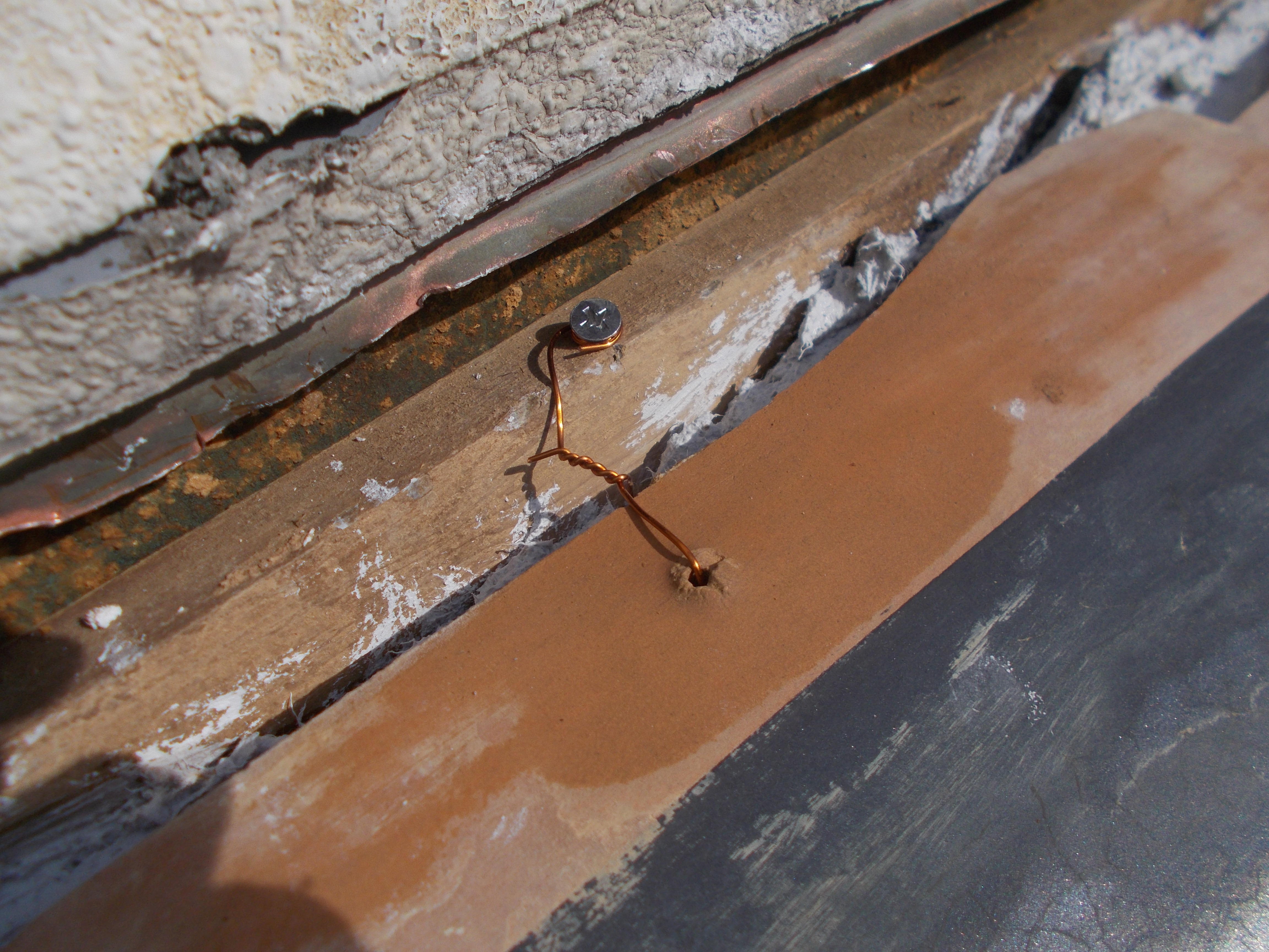 瓦ひとつ瓦ひとつが落下しないように銅線でとめていきます。