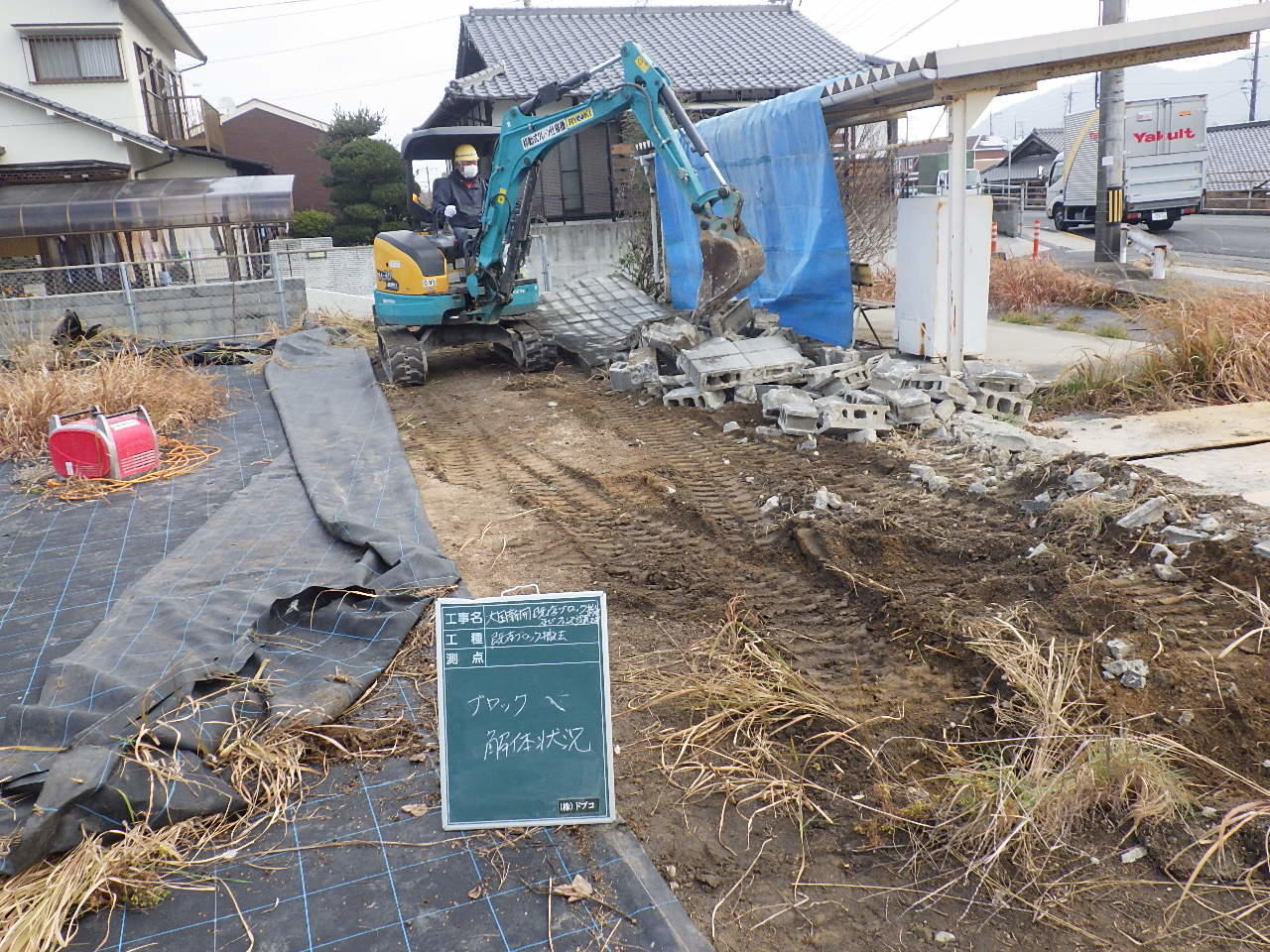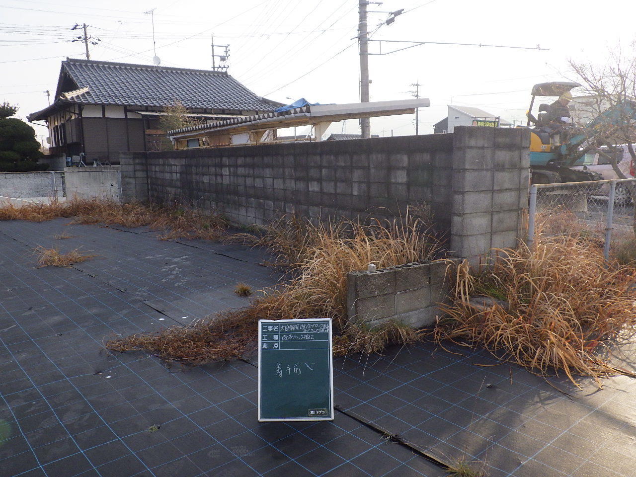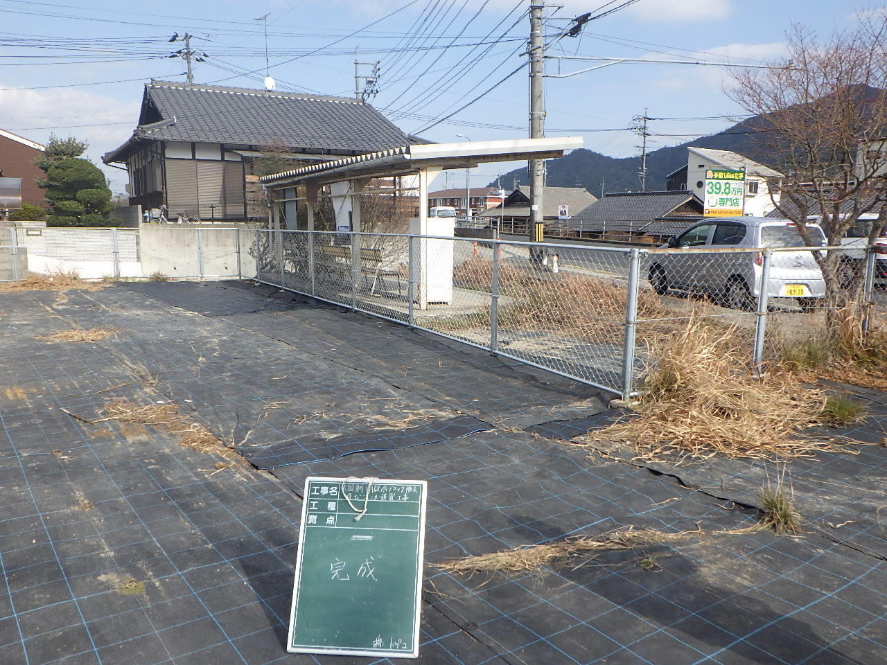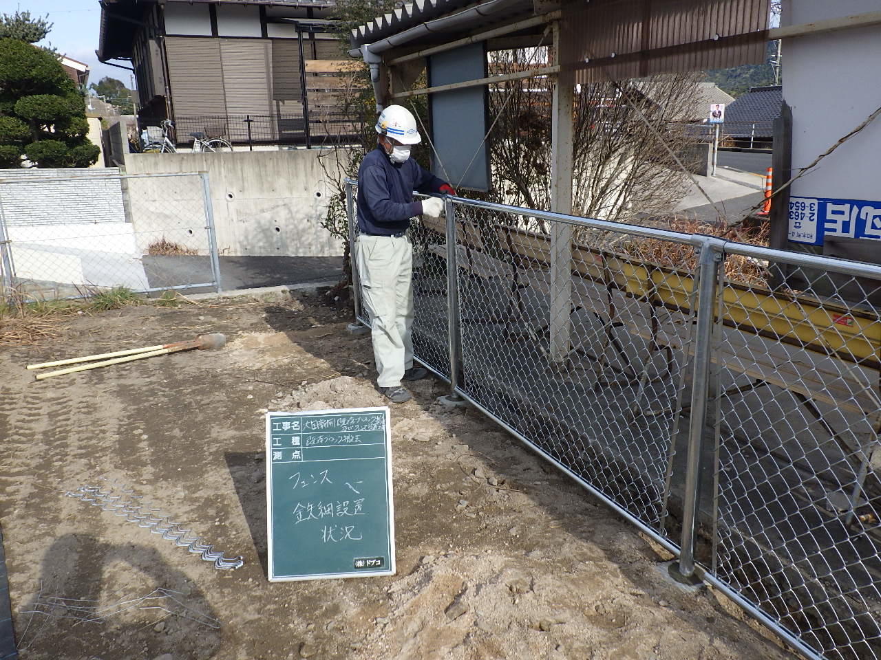 バス停裏が9段のブロック積みがあり、危険だということで撤去し既存の朝日のフェンスと繋いで違和感がないように作業を実施しました。