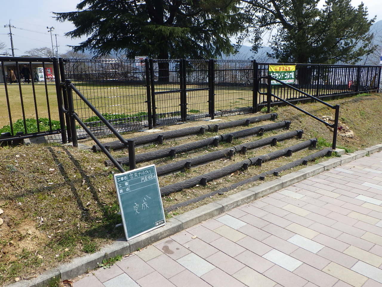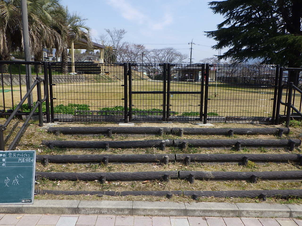 人の出入りやグランドゴルフのボールが外に出てしまうのを防ぐ為に門扉を設置しました。周りの景観に合わせて色を統一感のあるものにしました。