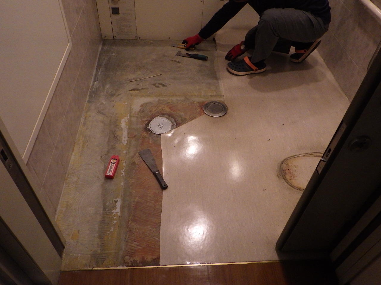 漏水を期に汚れていた床のシートも一新しました。トイレのフォルムも細くなりカッコイイです。