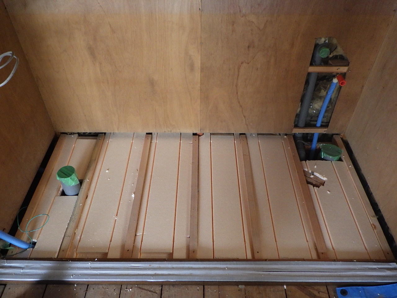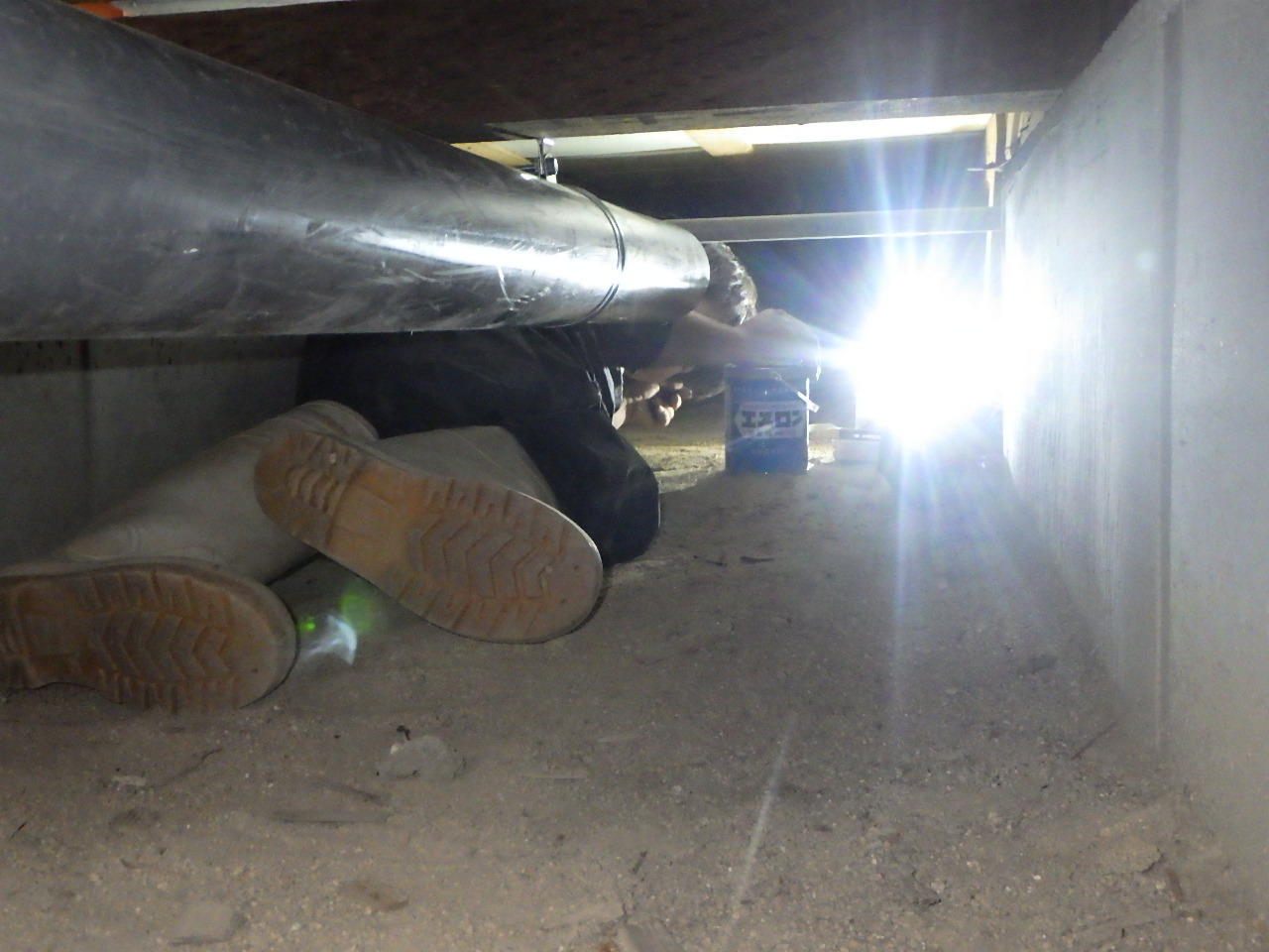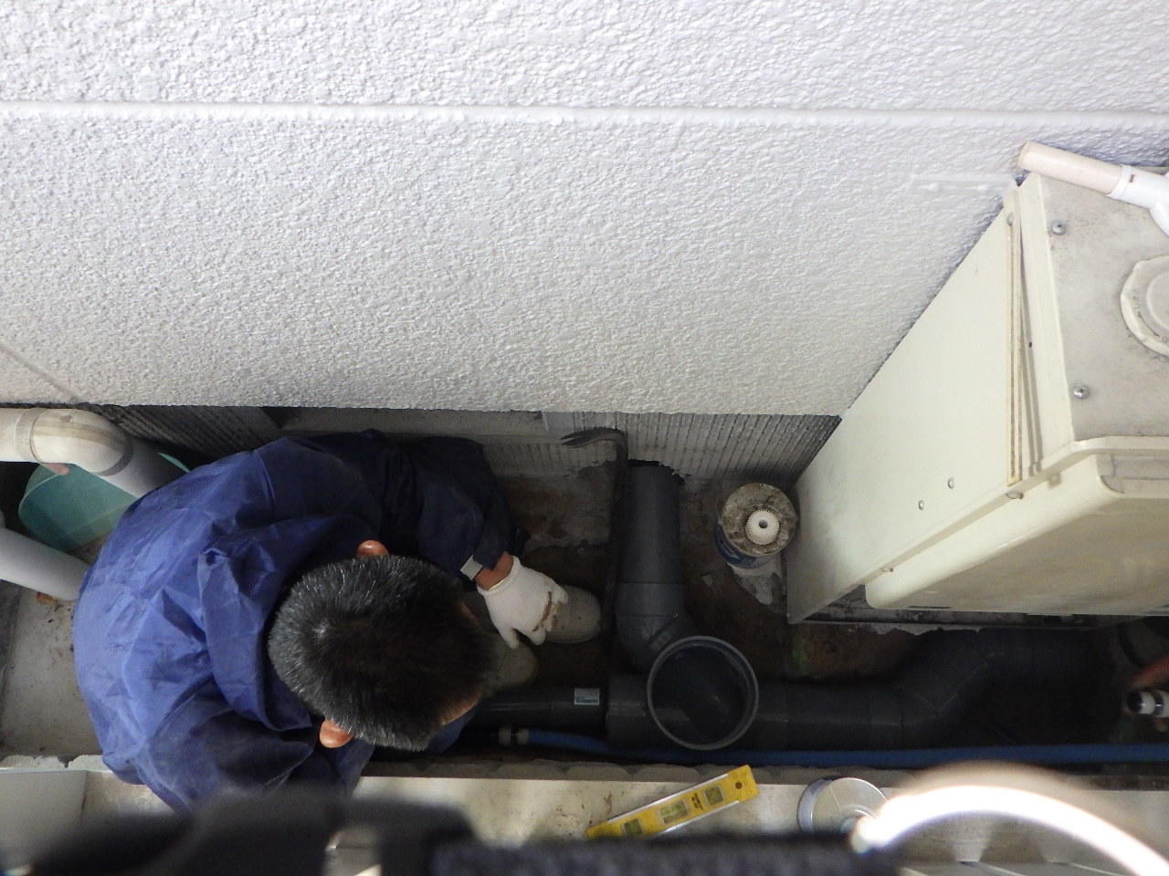 狭い床下にて給水、排水管を設置し途中には掃除口を設けて詰まった際に、対処可能です!