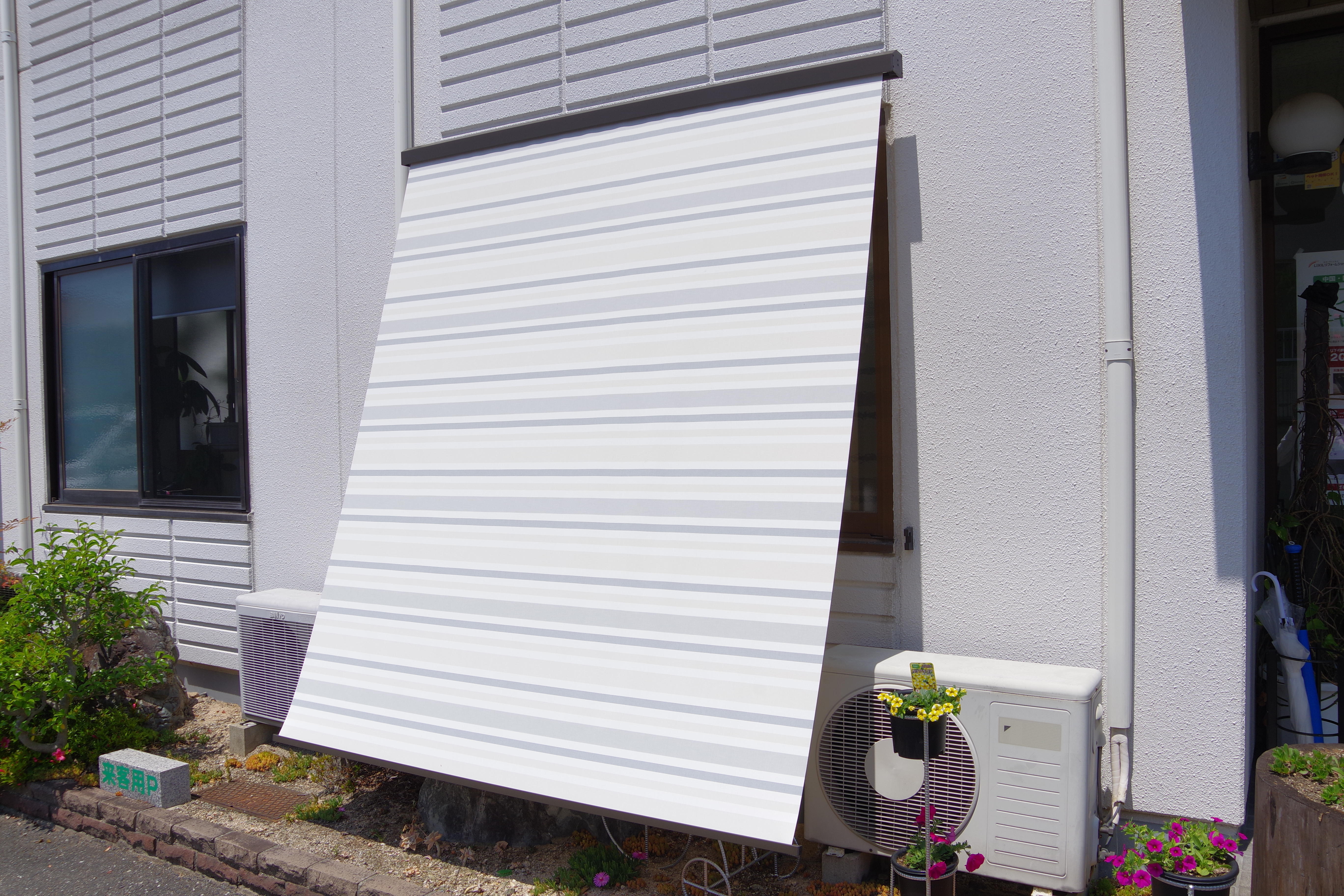 事務所入り口よこ窓にスタイルシェード(ノルディックボーダー)を取付けました。今まではお客様のご自宅ばかり取付けており実際に体感することがなく、この度体感できることとなりました。