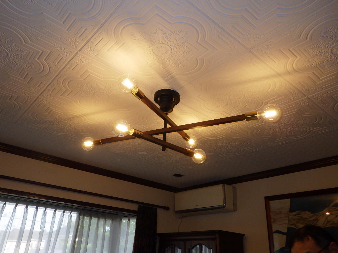 当初はお客様自身で照明器具を取付け予定でありましたが、既存照明器具を撤去したところ、電気の線が直接照明器具についており新たに取り付けるには電気工事士の資格を持った有資格者でないと工事ができず・・・困っていたところたまたま数週間前に配管工事を施工したところを点検作業中にたまたま居合わせて弊社の職人にて照明器具を取り付けられるように引掛けシーリングを取りつけました。ついでにオシャレな照明器具(MARGINAL)も設置しました。ちなみにこの電球もLEDということでビックリしました。無事に取付けることが出来てよかったです★