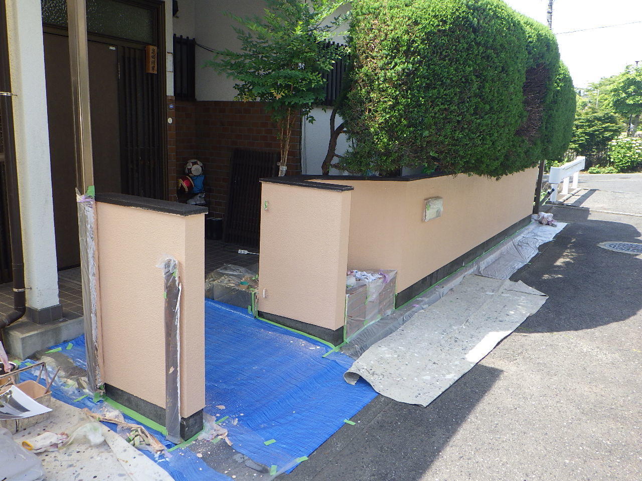ブロック塀がコケやカビなどで汚くなり洗浄だけでは綺麗にならなくなった為、塗装にて仕上げました!!