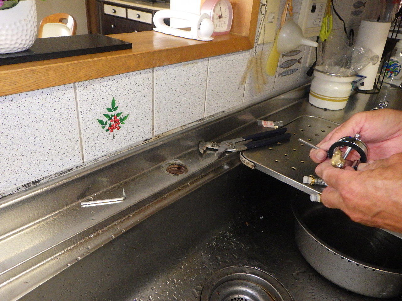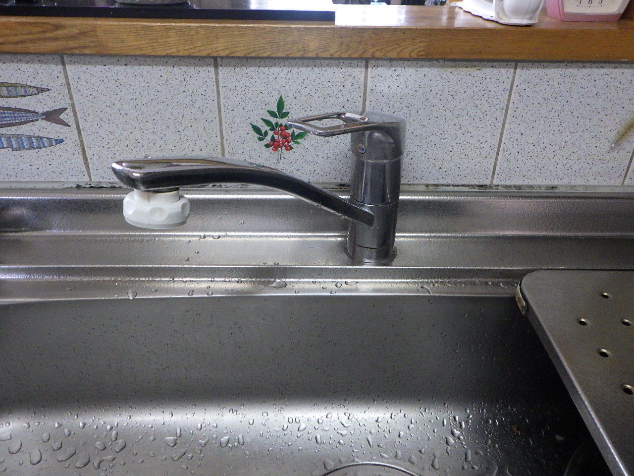 キッチン水栓取替、既存水栓のジョイント箇所よりちょろちょろと水漏れがあり設置して30年以上たっているため取替部材もないため、この度水栓のみの取替を実施しました。取替の際は流しの下に水と湯の給水があるため接続の際に物があったら難しいため掃除もかねて作業実施