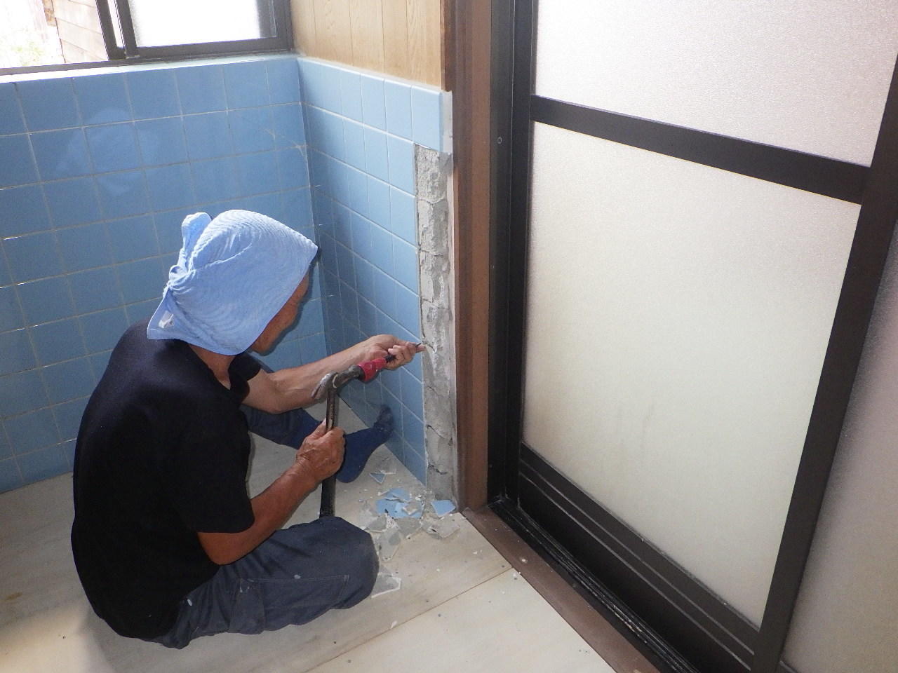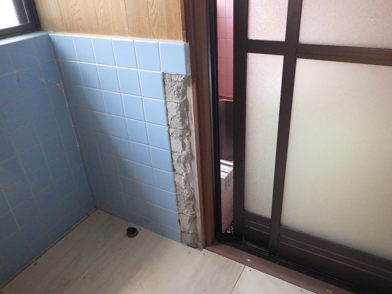 浴室入口タイルも破損していましたので、補修しました。36角タイル(ブルー)