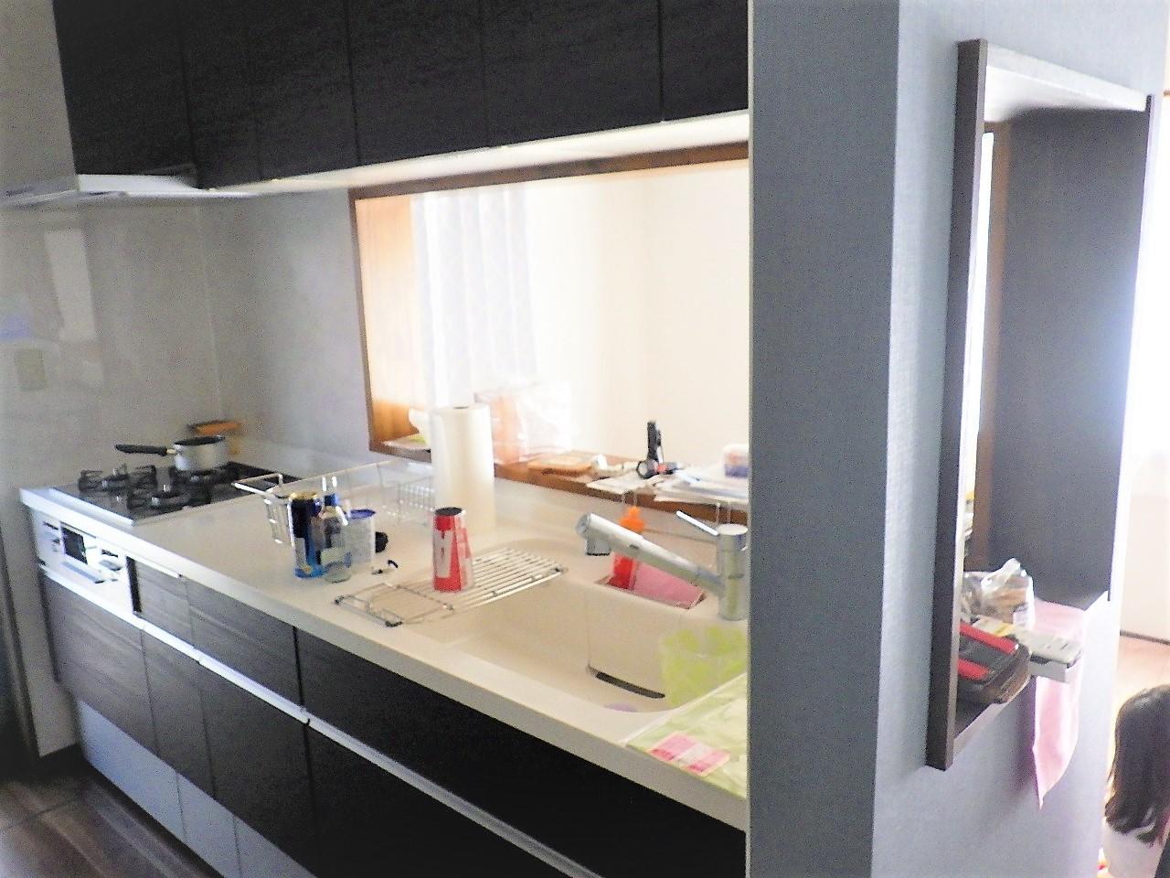 中古の物件を買い取り、水廻りを中心にリフォーム! キッチンは、シンプルなデザインで使い勝手の良いシエラに。 濃いブラウンの木目調でぐっと引き締まる印象になりました! バスルームや部屋の床なども同様に濃いブラウンで統一しました