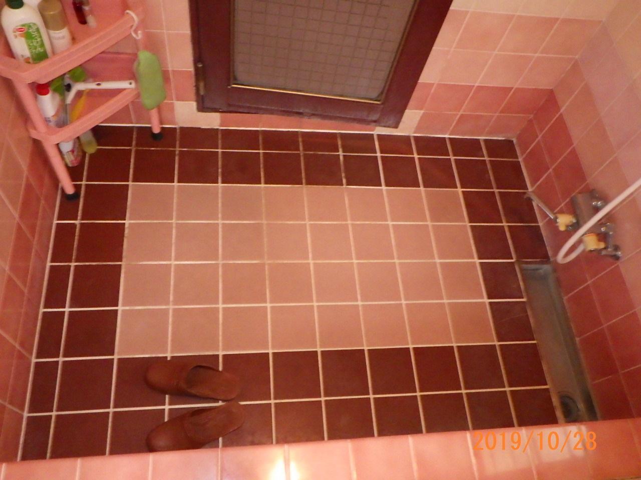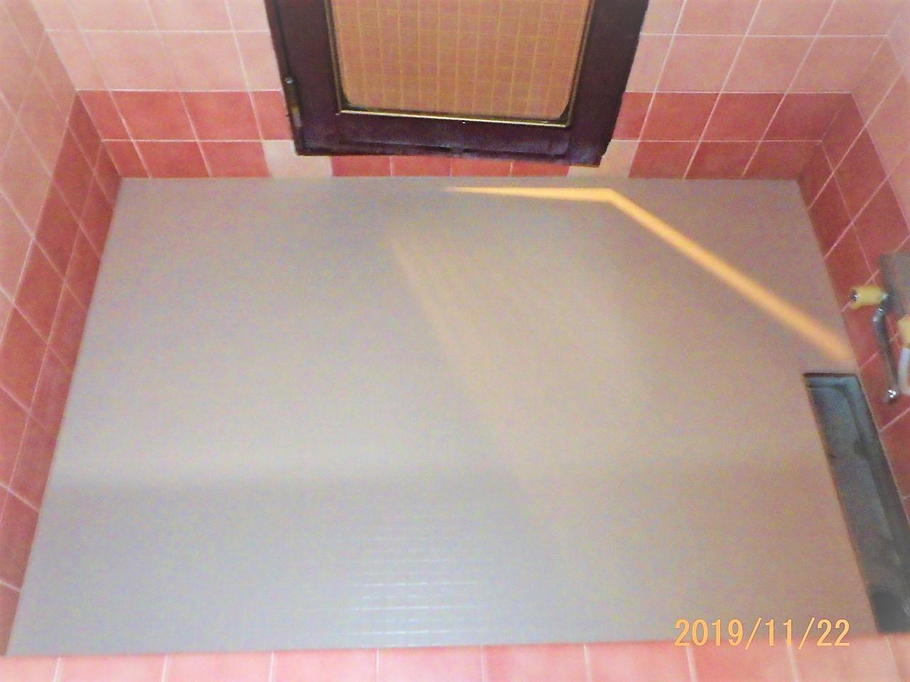 浴室の床にシートを張り付ける工事をしました! タイル時に比べて、掃除がしやすいという面があります。 見た目もフラットで素敵ですね!