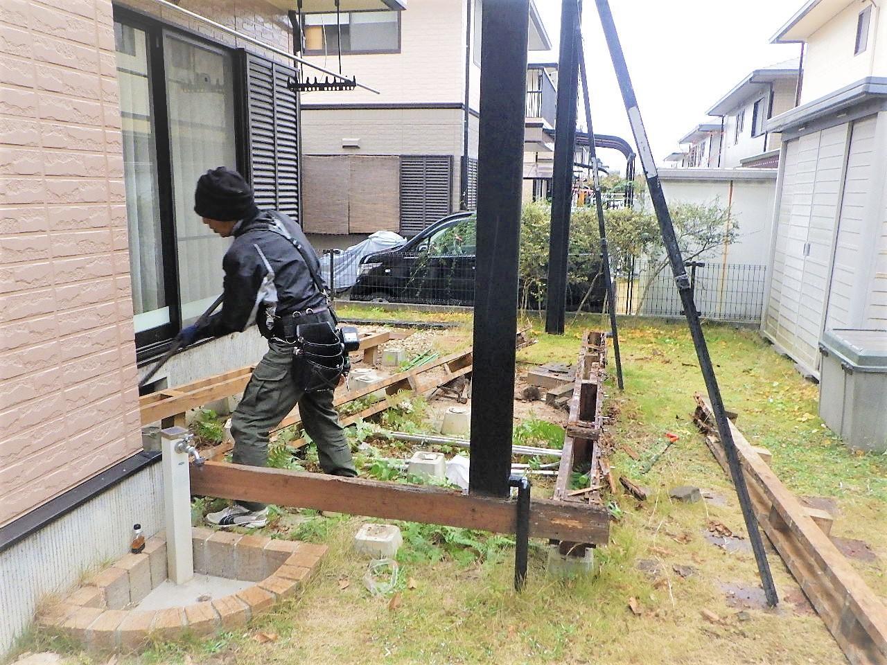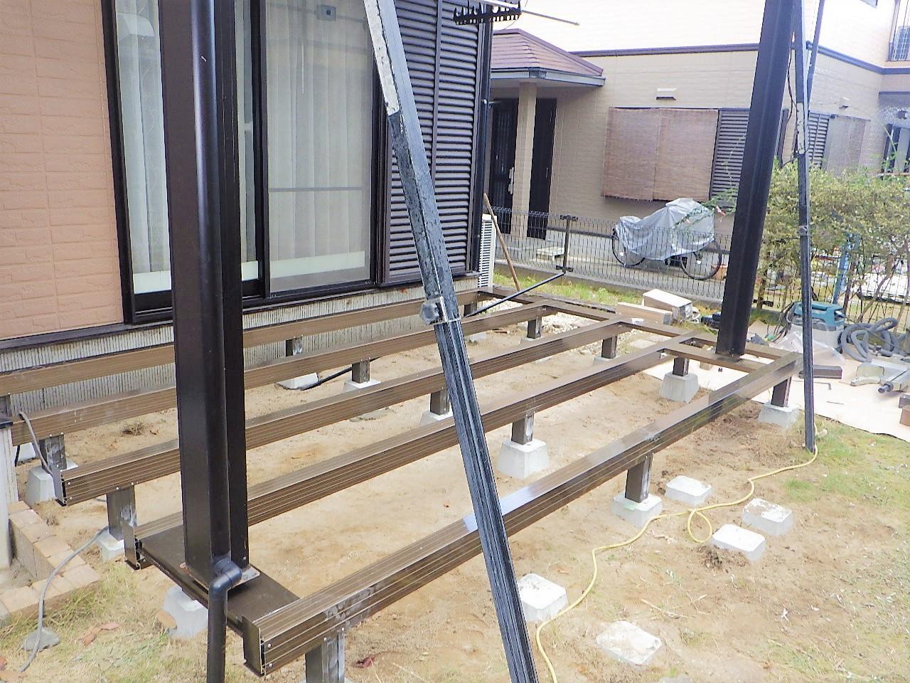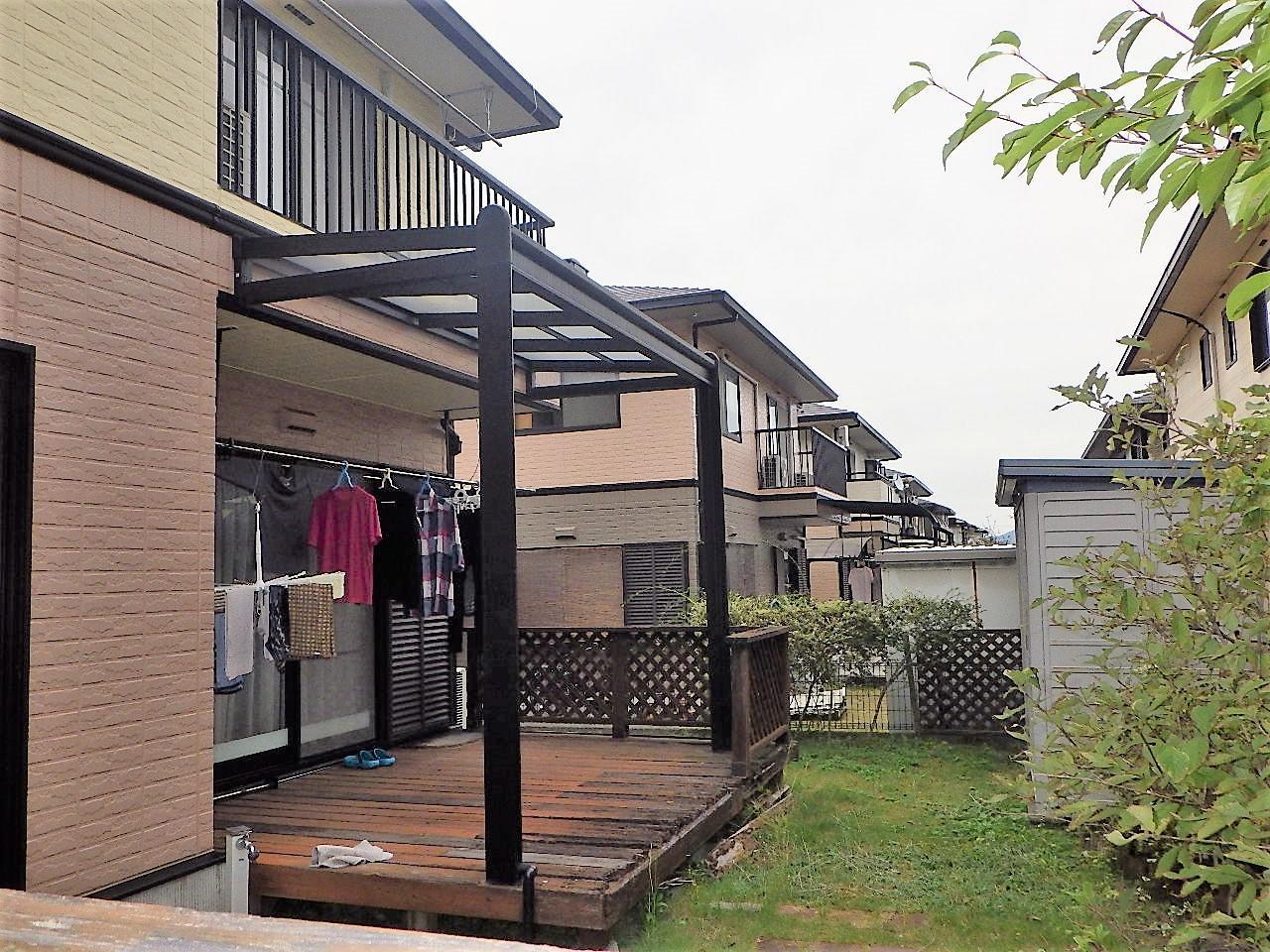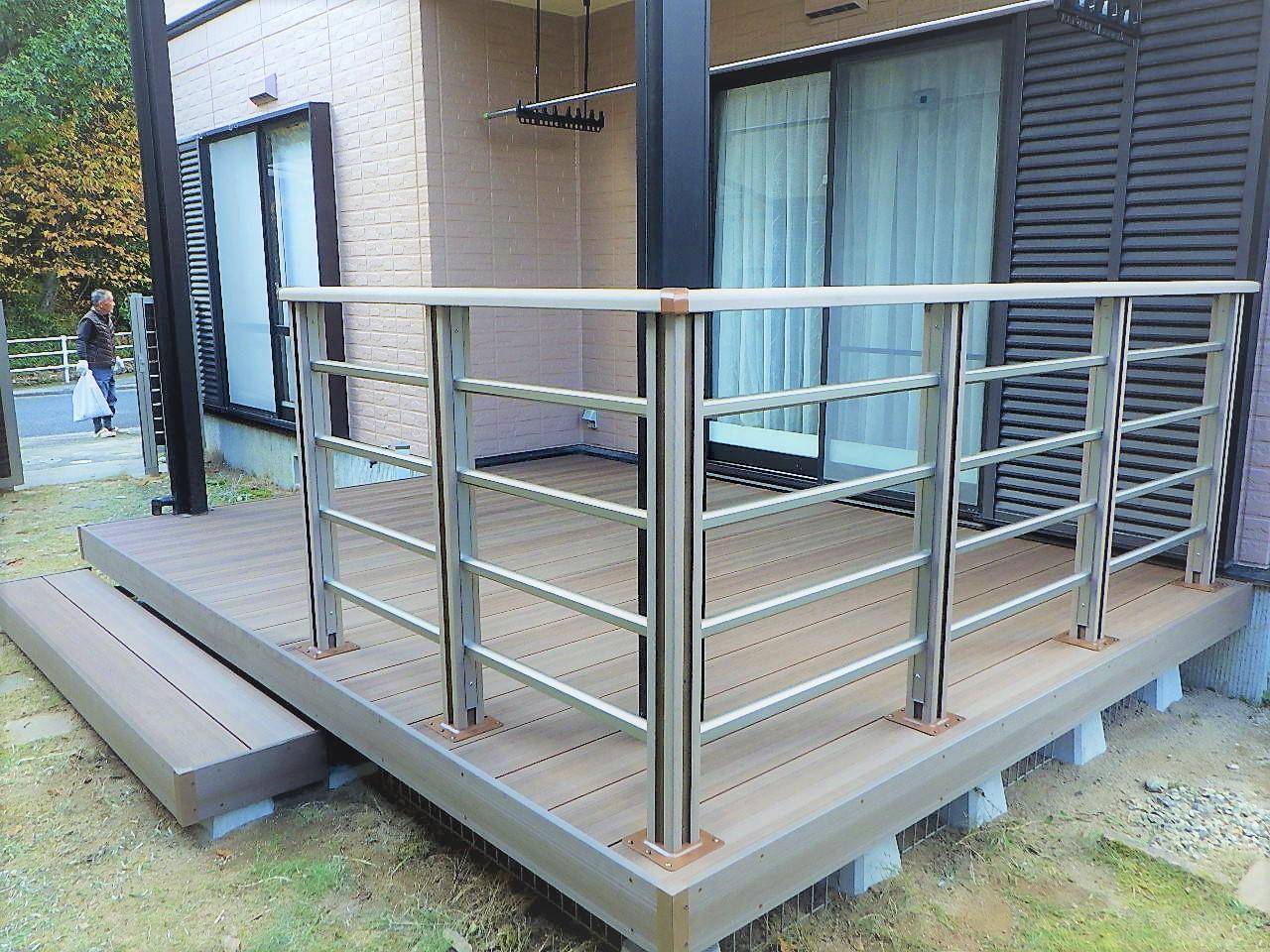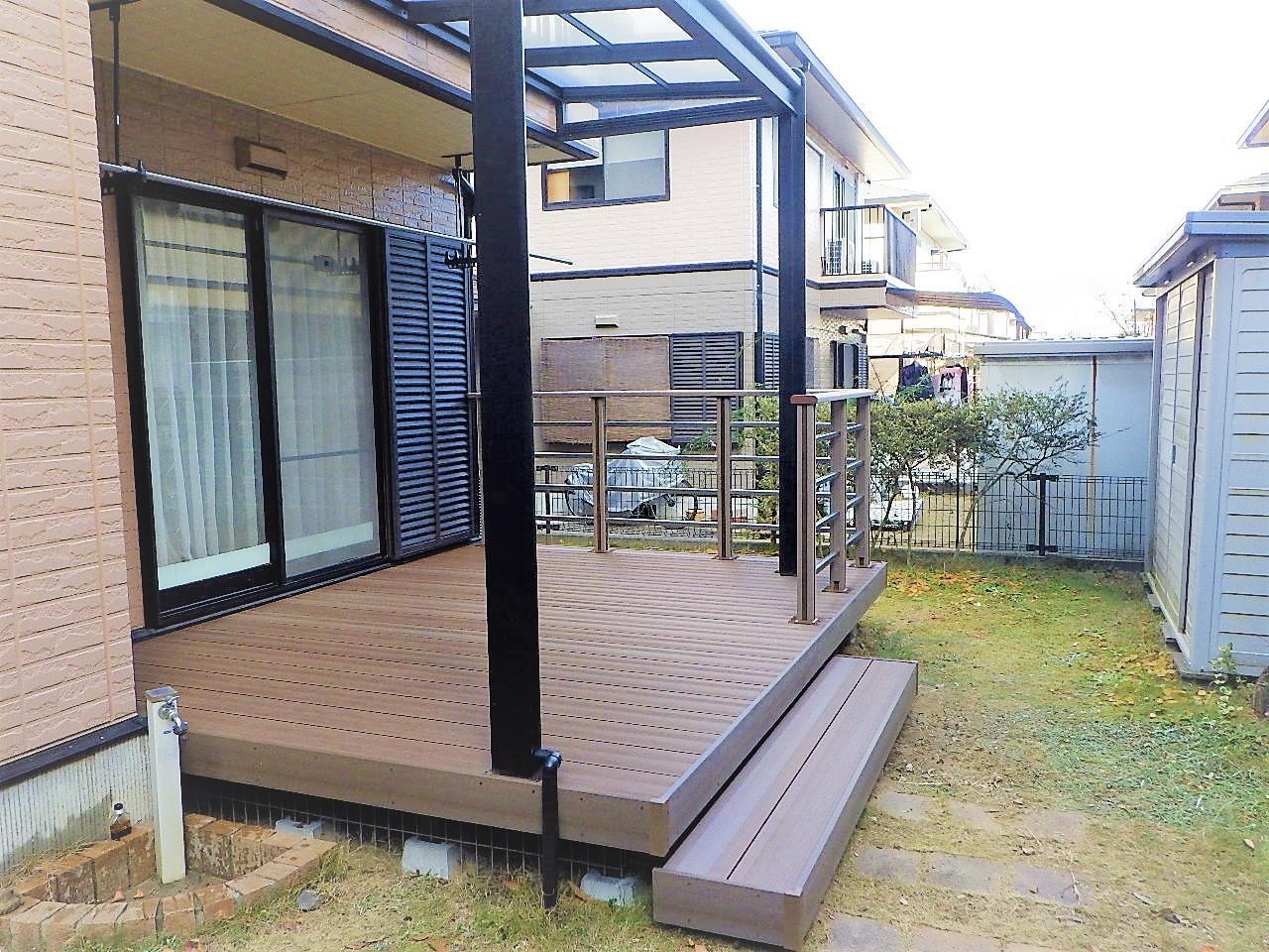 ウッドデッキが腐敗していたので「樹ら楽ステージ(木調)」というウッドデッキに取り替えました! デッキは樹脂製のものにしたので腐りにくく雨にぬれても安心です(^_^)v