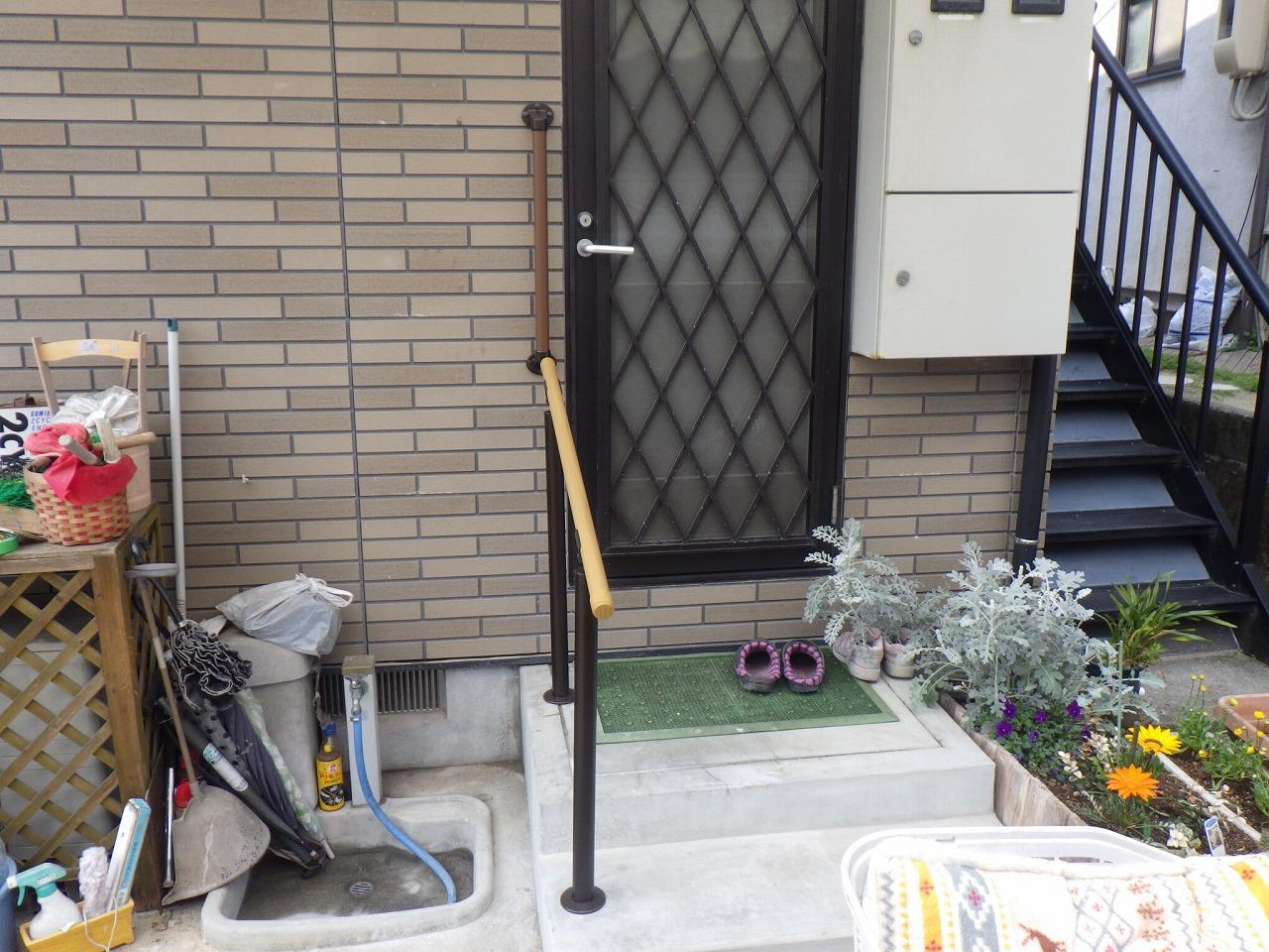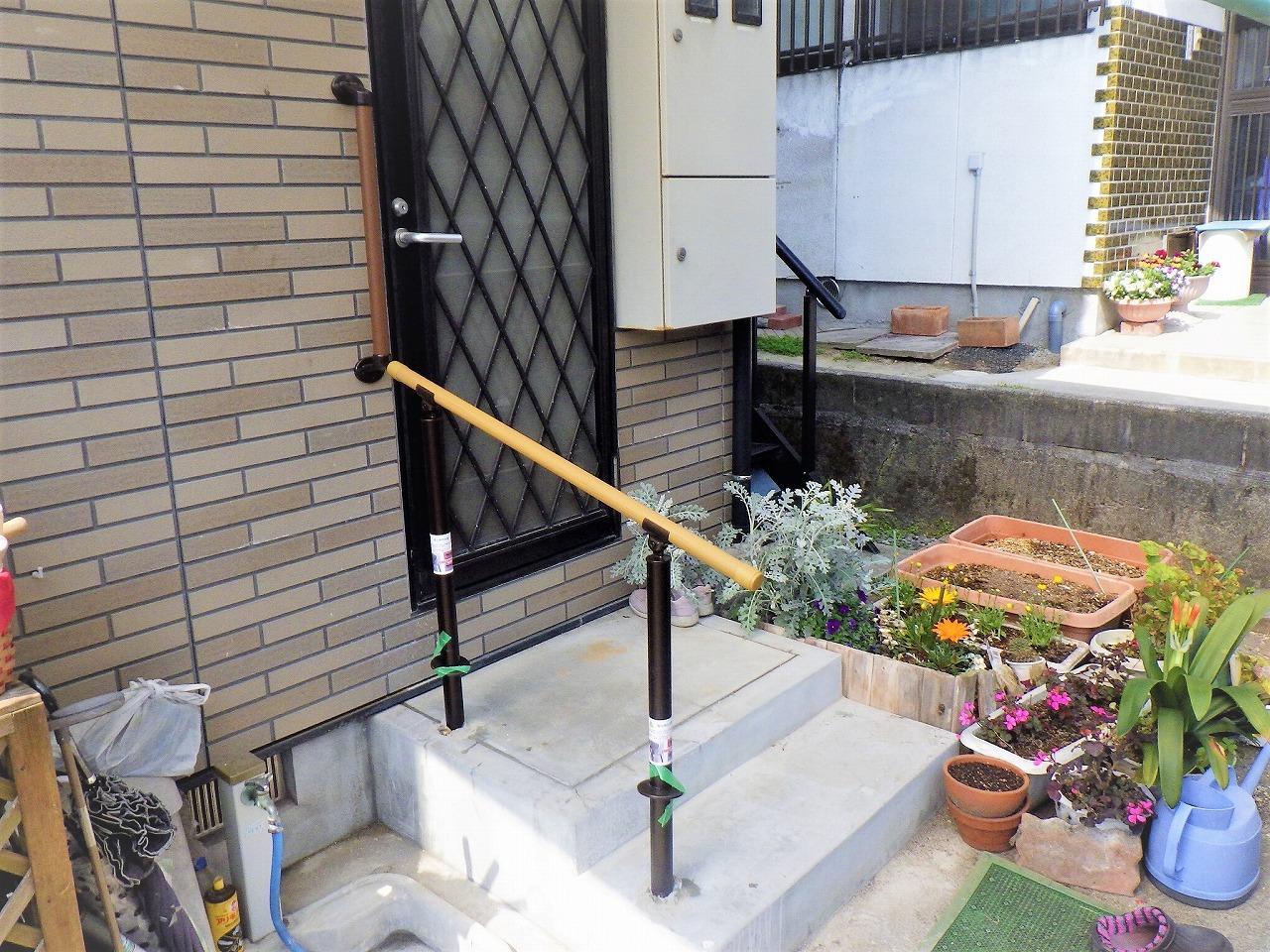 勝手口から出るところの段差を降りるのが大変なので、 廿日市市の介護保険を使って手すりを取付けました‼