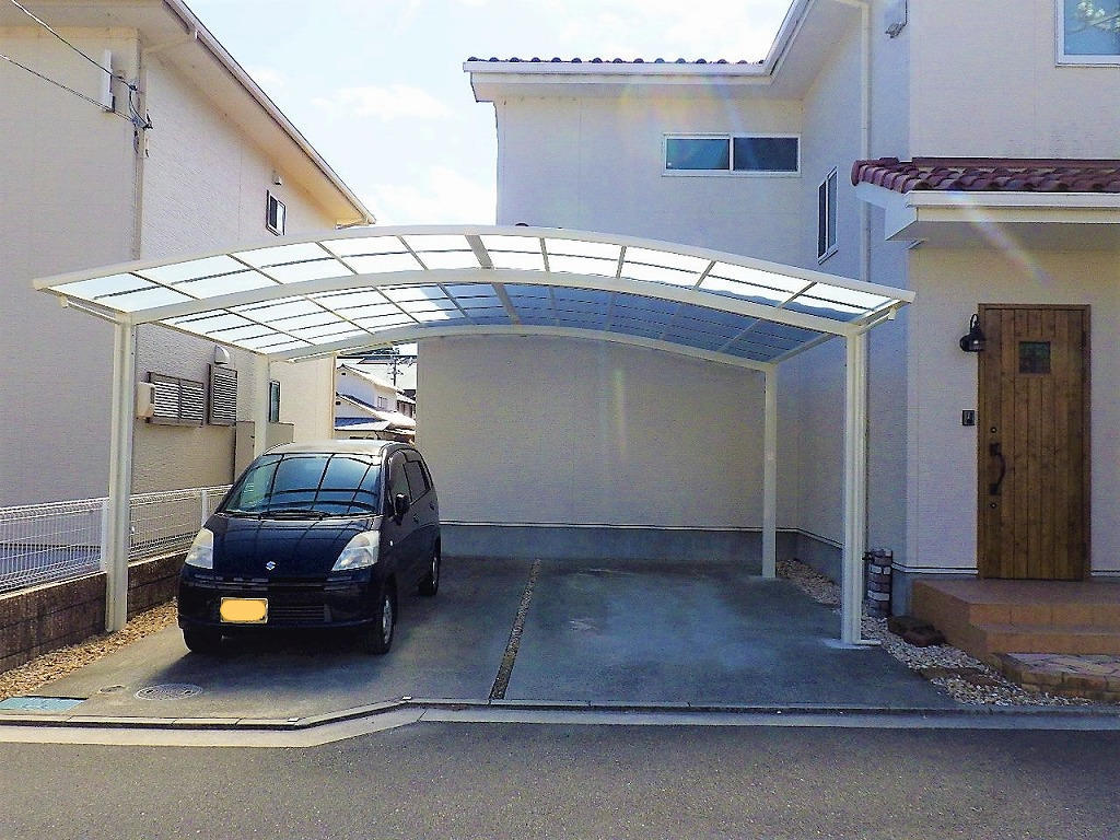 車から乗り入れするのに雨に濡れてしまうので、カーポートの設置をご希望されました。 お家が明るい色なので、それに合わせてカーポートの屋根も明るい色にして合わせました。 半透明の屋根なので光が入り玄関前が暗くならずに、かつ飛来物や落下物から車を守る優れものです。