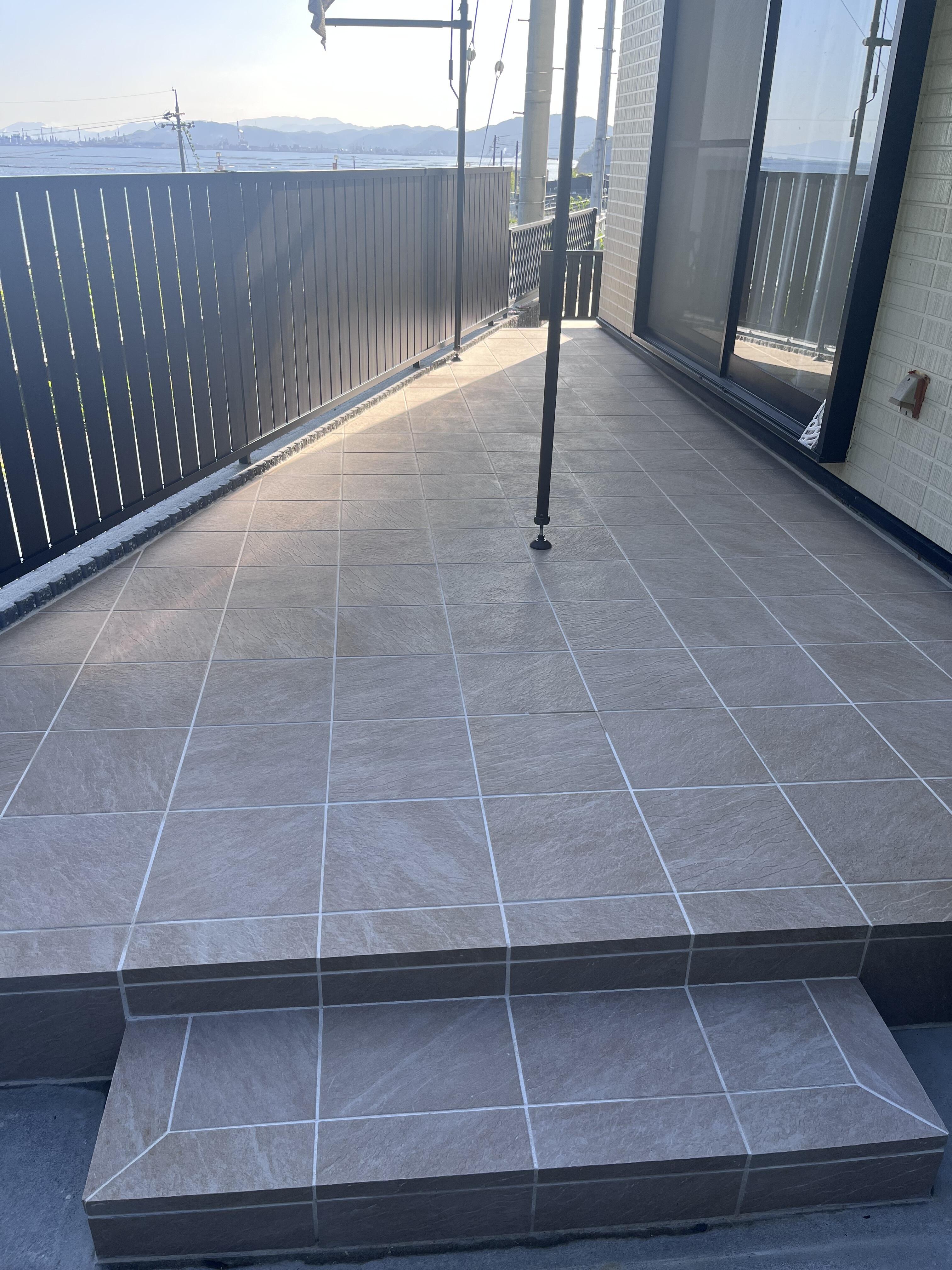 ウッドデッキをメンテナンスの手間を省けるタイルデッキに改修しました。 同時にフェンスをアルミ製に改修しました。 【タイル】LIXIL IPF-300/LTS-4 ライトスレート 【フェンス】LIXIL フェンスAB TS2型(縦スリット)