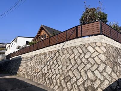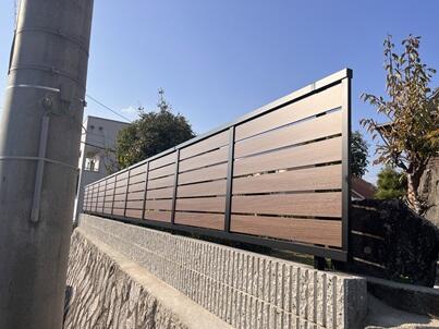 既存のフェンスを撤去して、自宅のログハウス風の外観に合ったモカcolorのフェンスを新設しました。