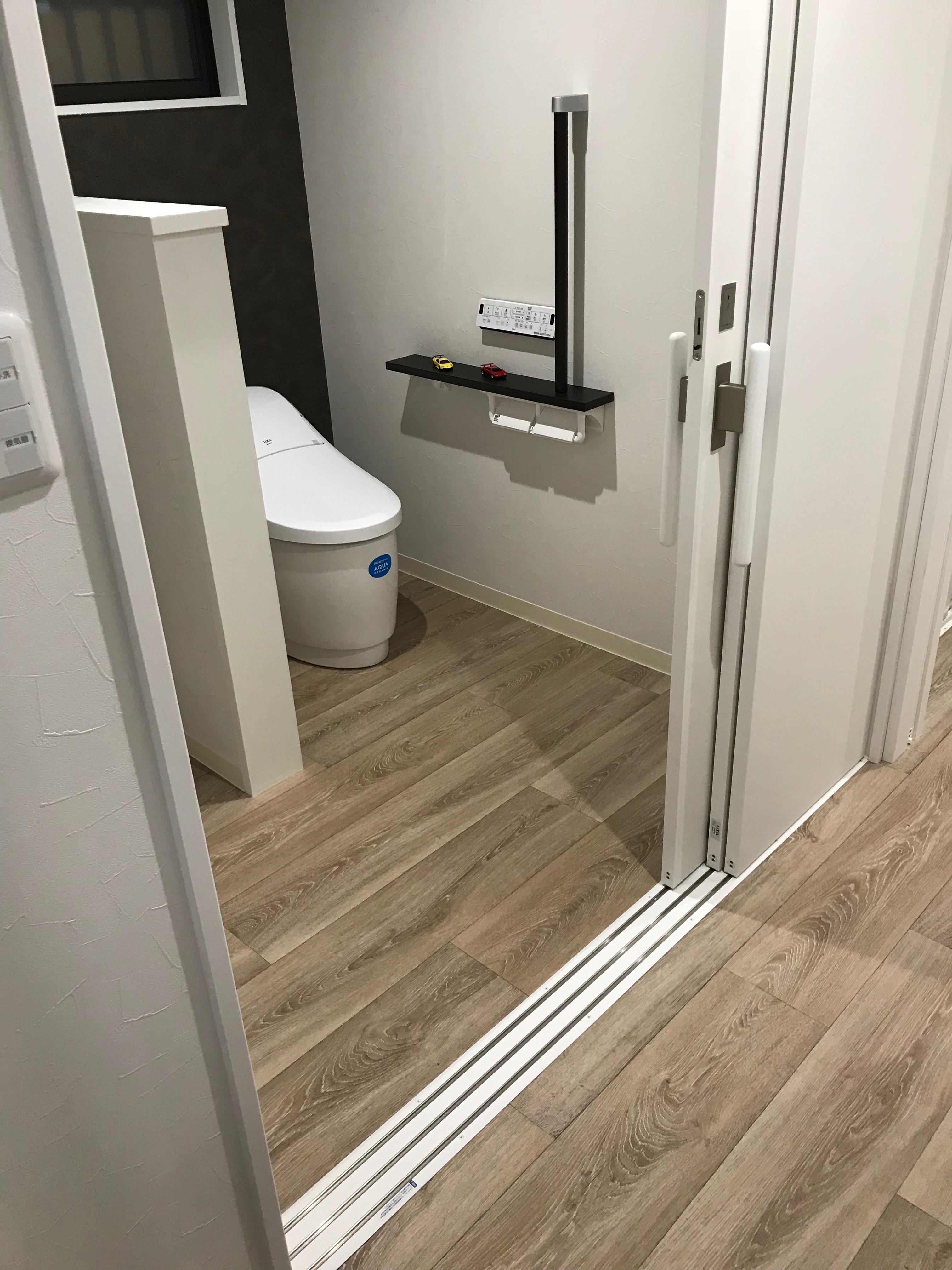 LIXIL 連動式3枚引戸をご採用いただきました。通常の引戸よりも開口幅が96㎝と広くなっており、出入りがスムーズになりました。