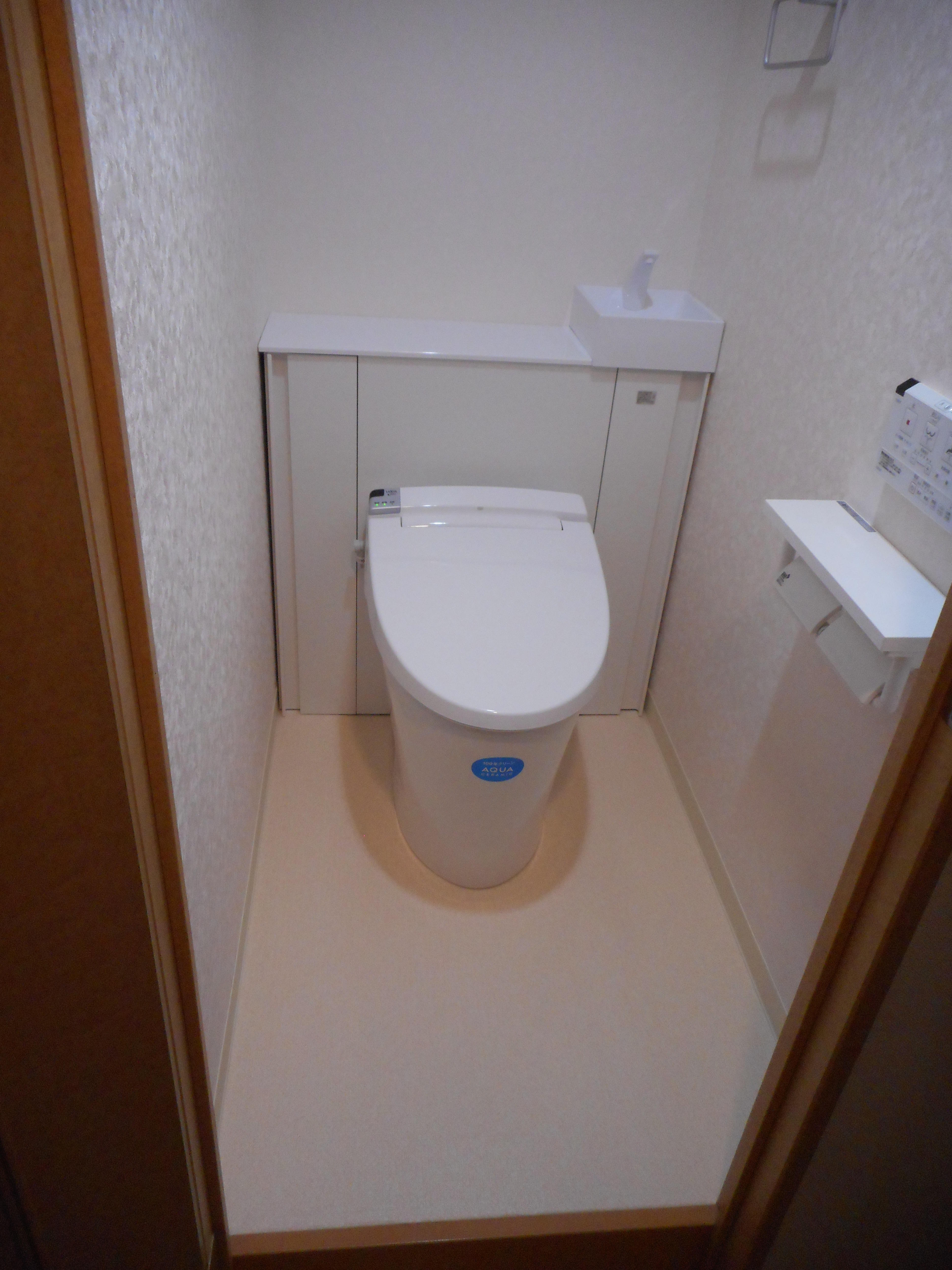 LIXIL リフォレをご採用いただきました。トイレの後ろ側が収納キャビネットになっていますので、とってもお掃除が楽になりました。
