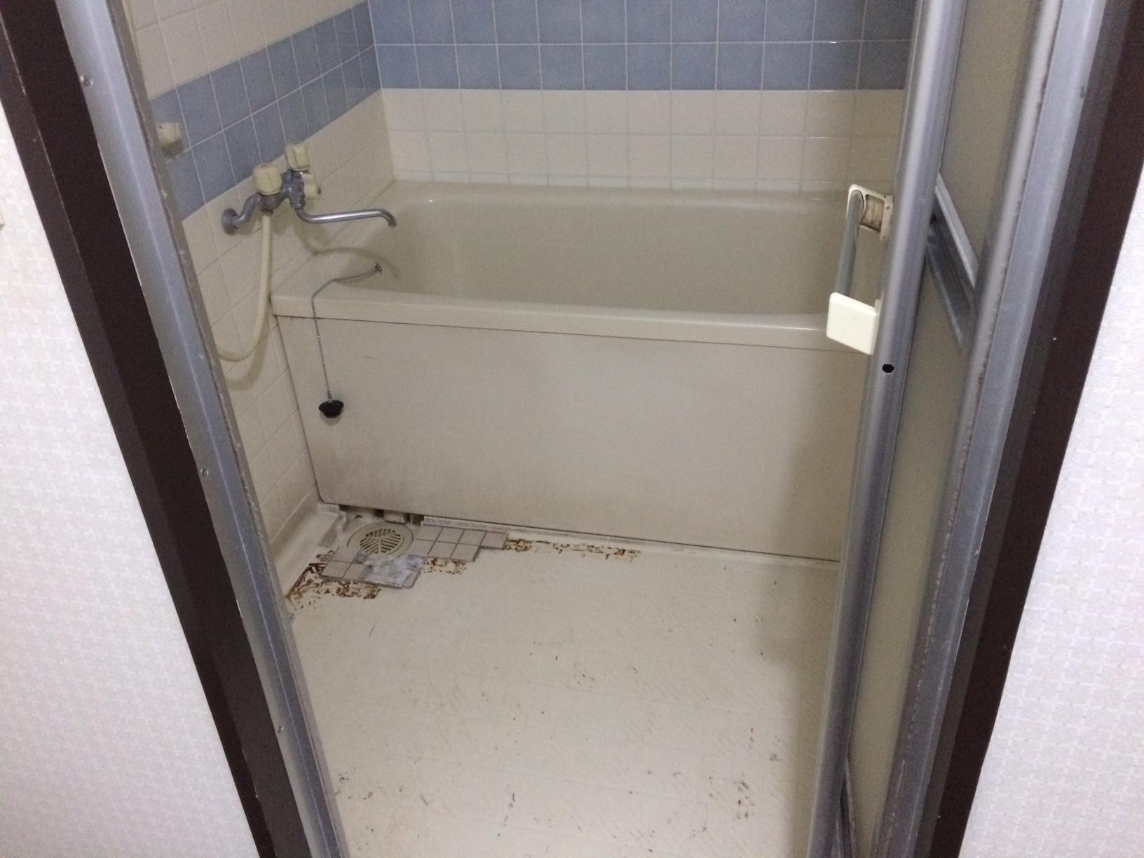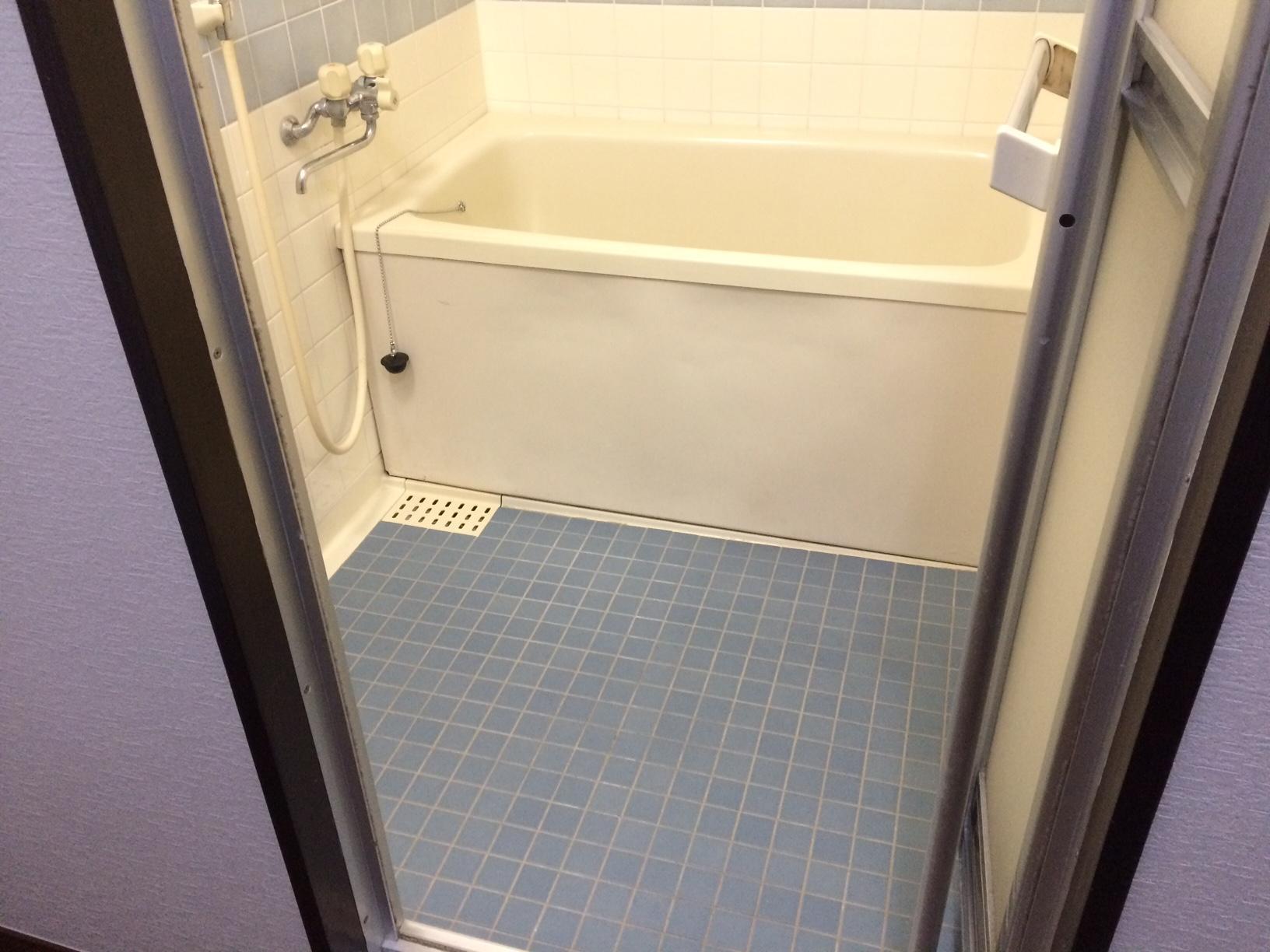 宇部市でのユニットバスリフォームです。FRP床に貼られていたタイルが剥離しており、今回修繕することになりました。既存の壁のアクセントタイルのイメージを活かそうと思い、同系色(ブルー系)の床タイルにしました。イメージ通りの仕上がりになりました!