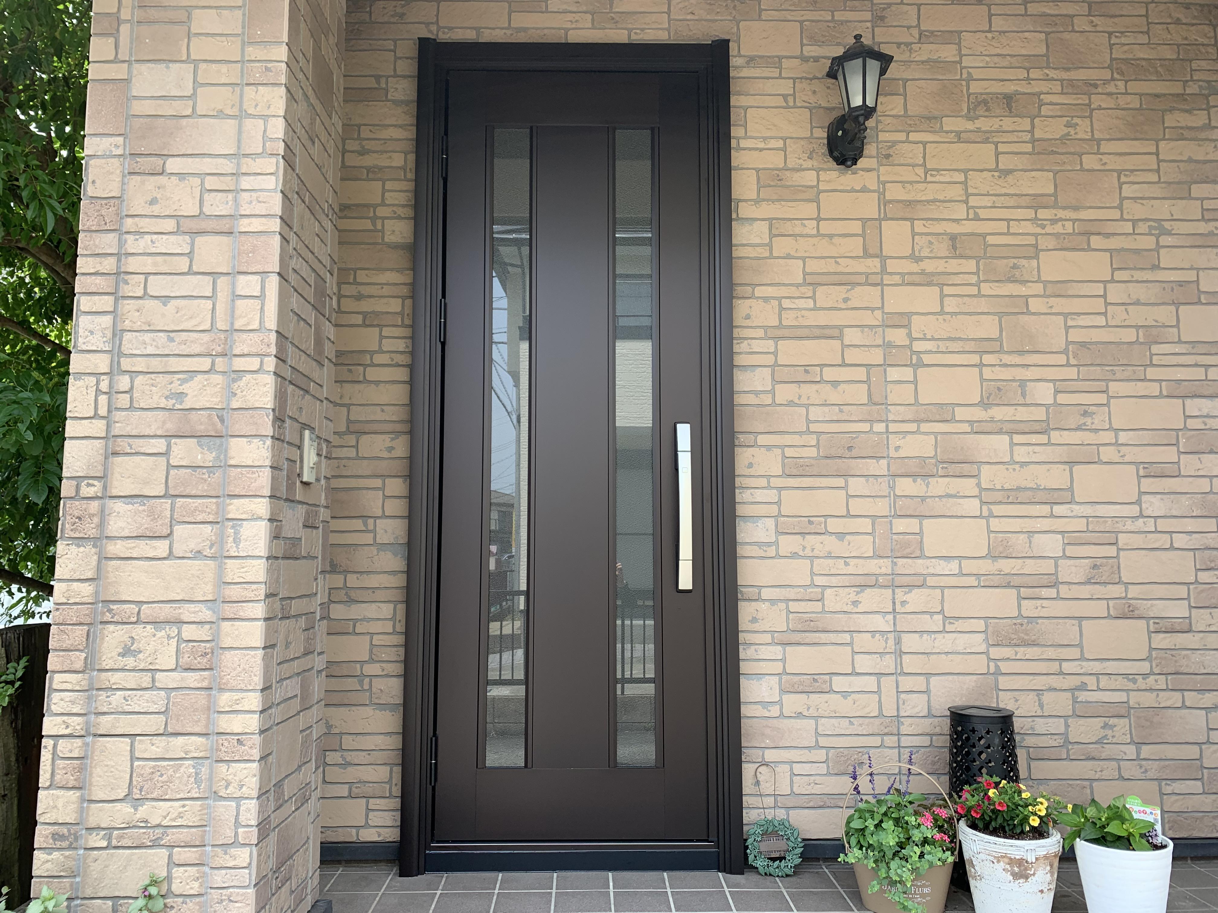 以前、工事をして頂いたお客様から玄関の鍵が壊れたので、この機会に玄関の取替をしたいとのご依頼を頂きました。 既存の枠を残して施工するリフォームドアなので、工事もその日のうちに終わります! さらに玄関の鍵をリモコンキーにした事で、車のキーの様にハンドルのボタンを押すだけで開錠・施錠が出来ます。 以前と比べて格段にご使用し易くなったのではないかと思います。