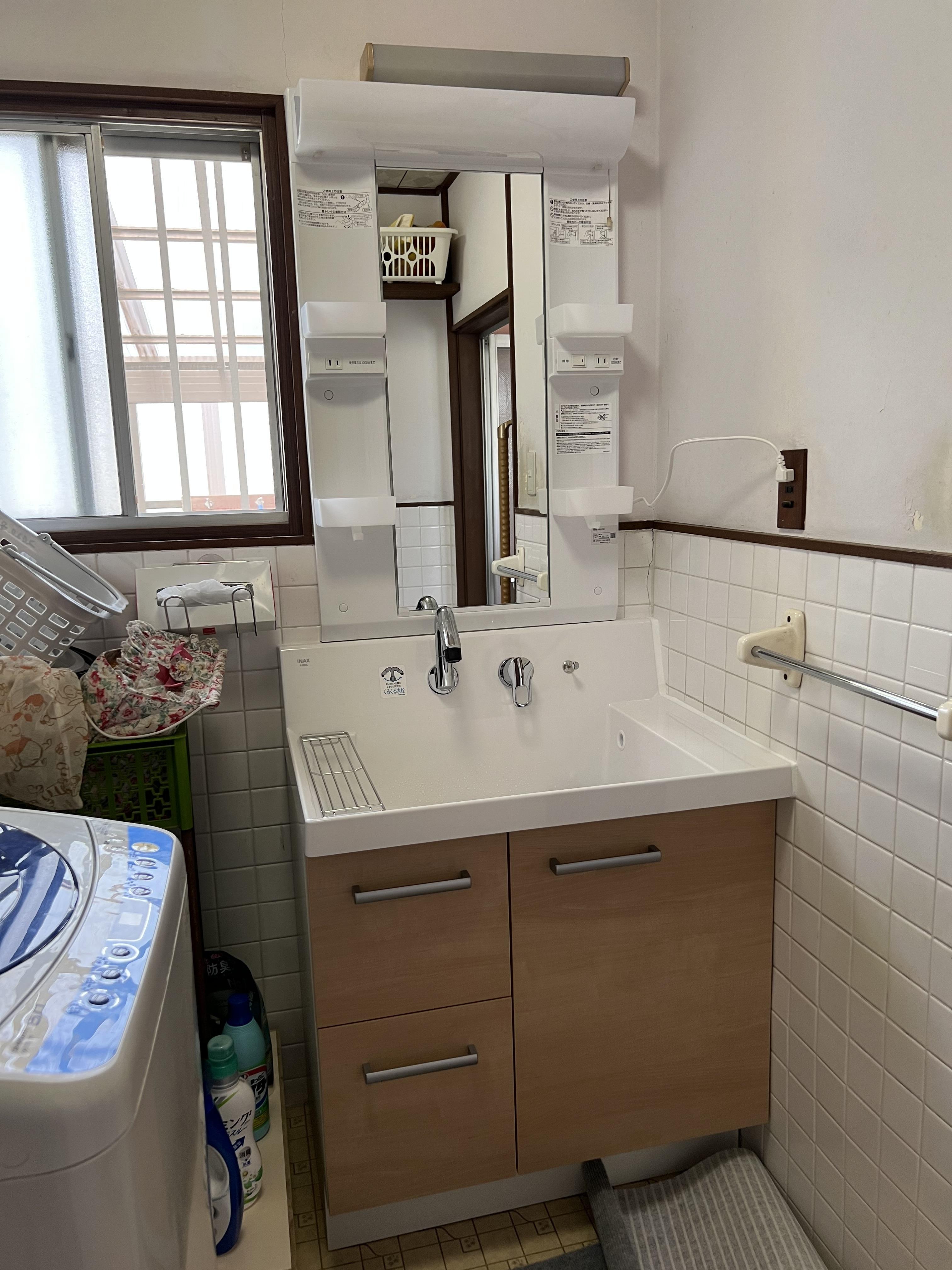 排水が漏れ出したので、お取替えをしたいとのご依頼をいただきました。 洗面ボウルが広くなったので使いやすくなったと思います。 ありがとうございました。