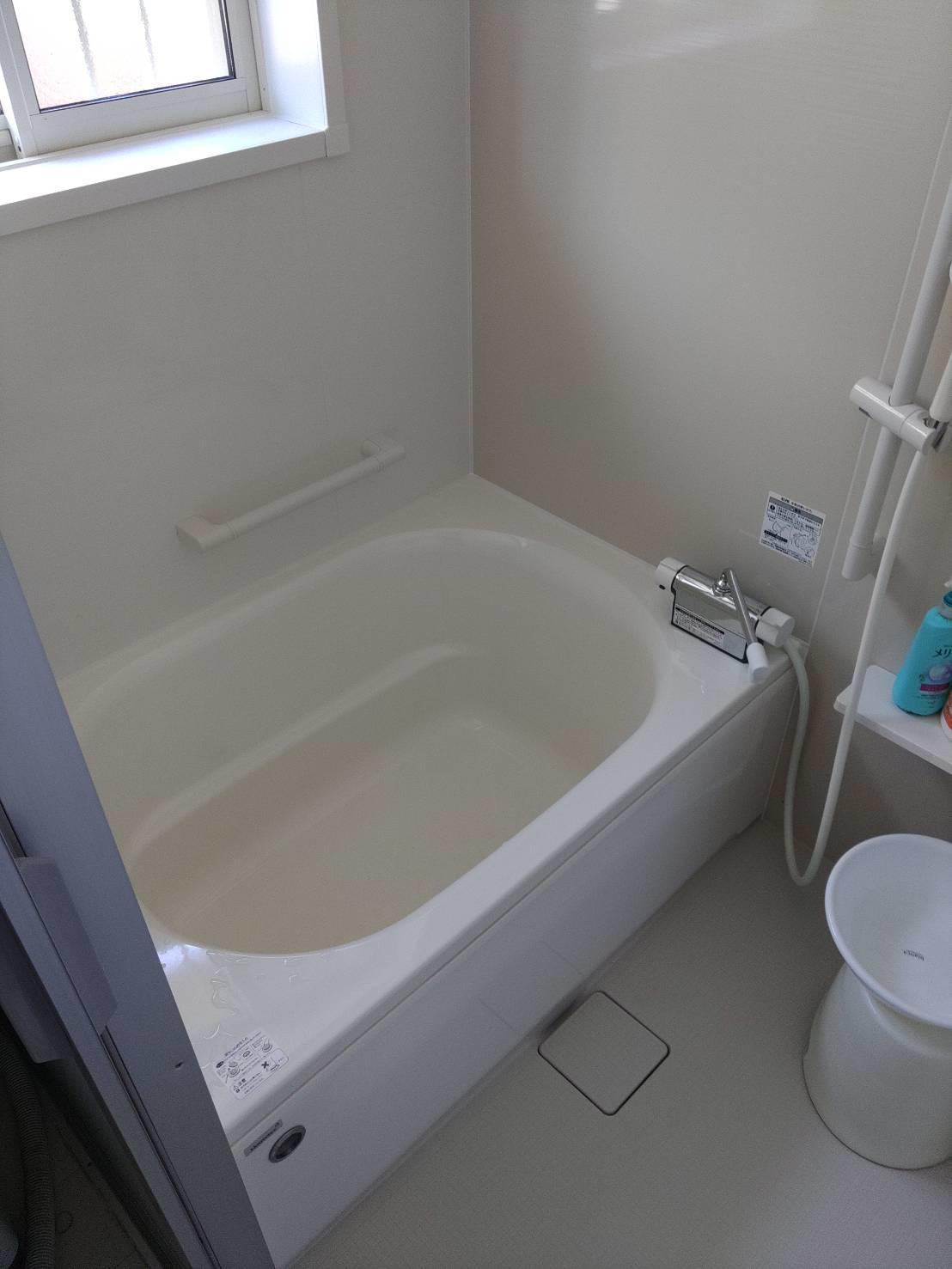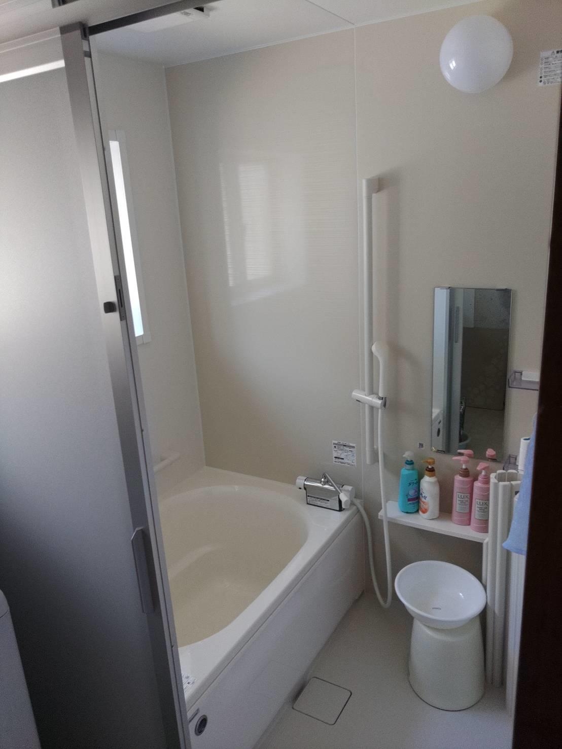 在来浴室(タイルのお風呂)から、ユニットバスルームへの工事をさせて頂きました。 窓をペアガラスで断熱仕様のものに変えたいとのことでしたので、 壁を撤去して下地からやり直しました! コストや工事日数はかかりますが、 毎日使用される場所なので、これからは温かく快適に過ごして頂けると思います! この度はありがとうございました!!