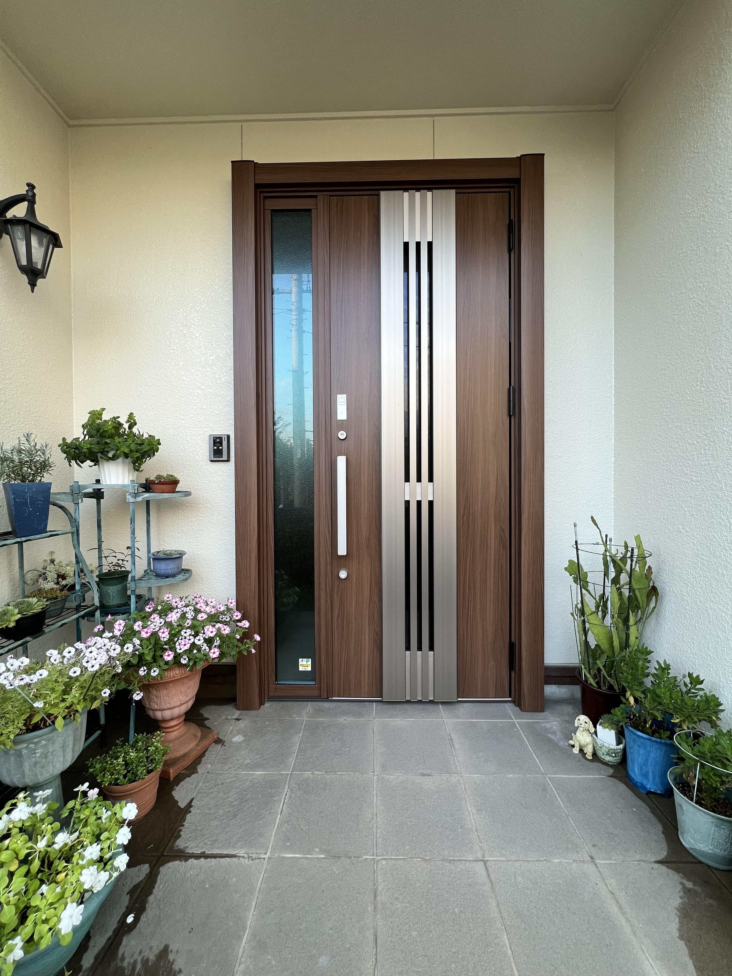 玄関ドアリフォームをして頂きました。 スマートロックシステム FamiLock (スマートフォンやリモコン、カードキー、タグキーを使用して玄関ドアの施解錠を行うシステム。) をつけて頂いたので、鍵穴に差して手動で鍵を開ける手間がなくなります! とても便利なので、オプションでつけられる方が増えています。 この度はありがとうございました!