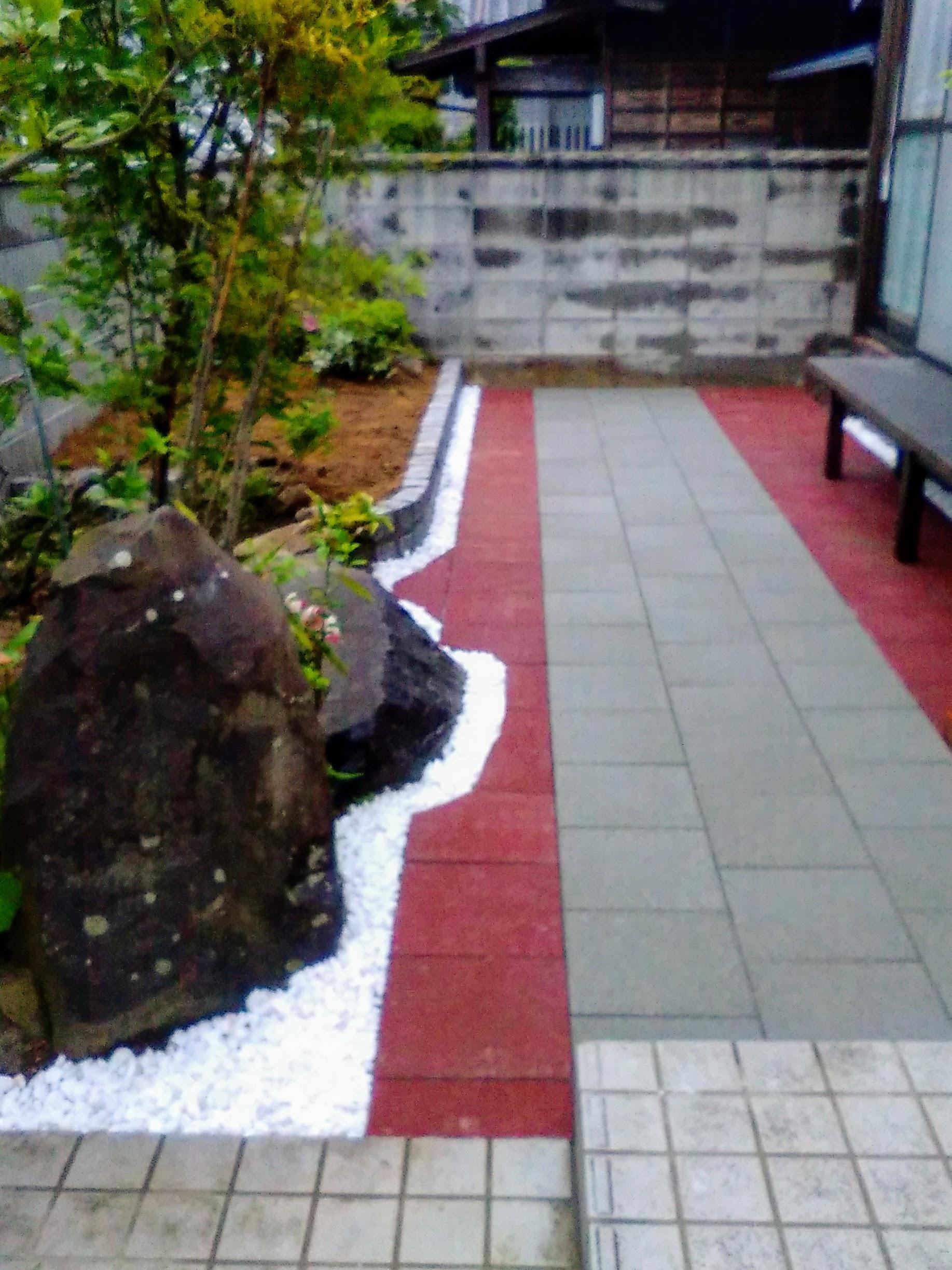 雨の日でも水はけ抜群の透水タイルを敷き詰めすっきりしたお庭になりました。