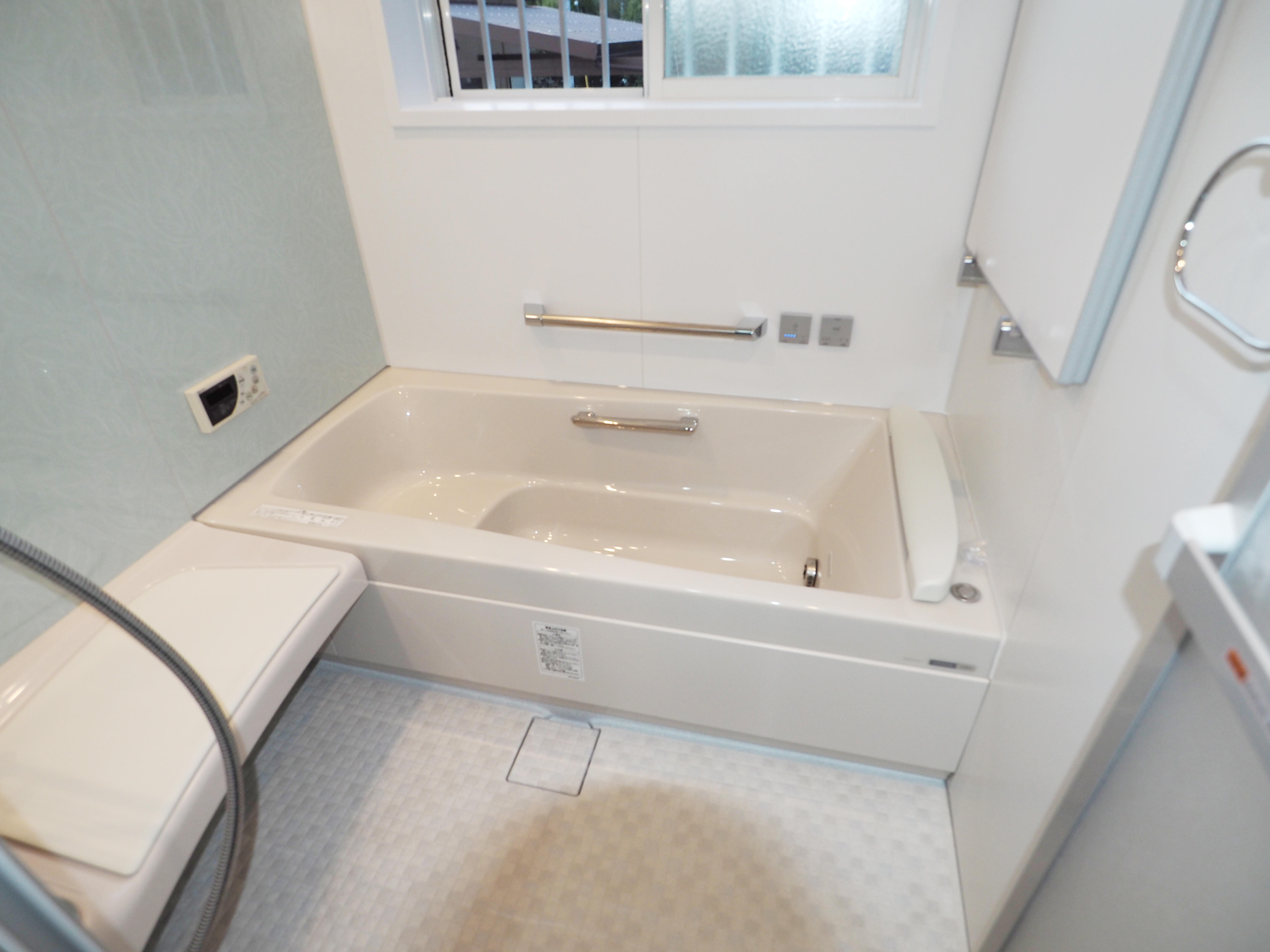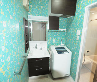 浴室をLIXIL最高クラスのスパージュに。洗面・脱衣所の収納も、壁面収納と洗濯機の上のスペースを利用しました。